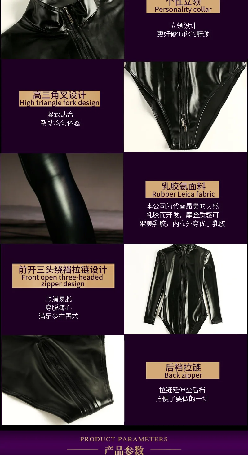Для женщин ролевая игра, с длинными рукавами, на молнии, боди с открытой промежностью сексуальную привлекательность XXL латекс пикантные черные сапоги Фитнес формирование тела купальники