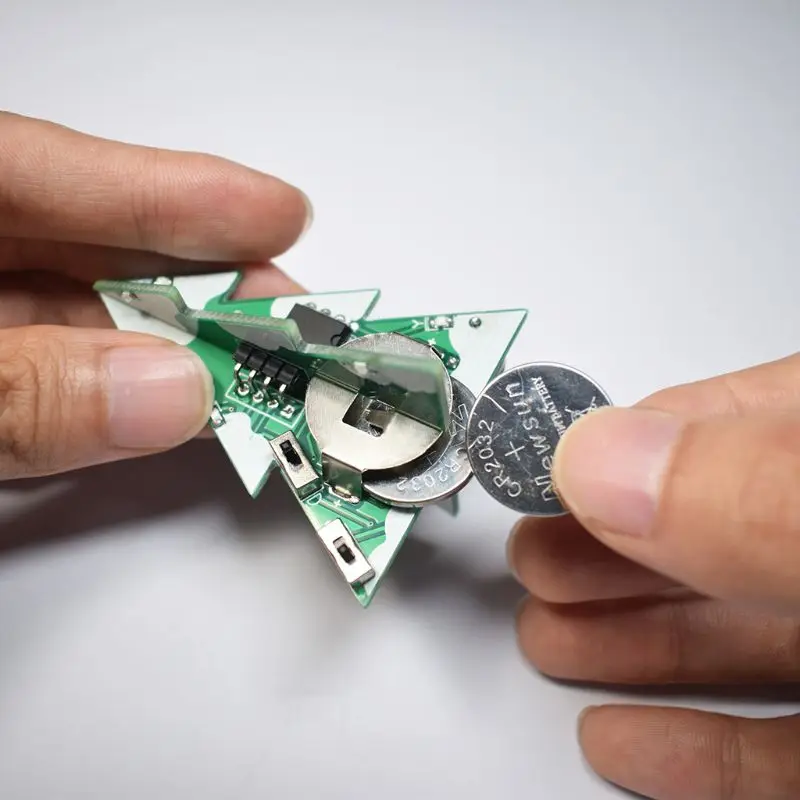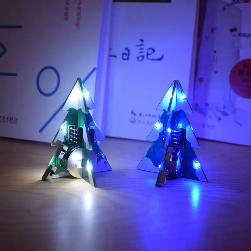 Это простой мини-набор для рукоделия с рождественской елкой. Три различных PCBs объединены в 3D стерео модель рождественской елки. -Различные разных цветов может быть выбран. Он может питаться от аккумулятора кнопки и может быть свободен от источника питания. Встроенный 7 светодиодный градиентный режим плюс 7 различных рождественских мелодий.