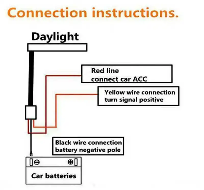 Простая установка, просто требуется правильное подключение к положительной и отрицательной стороне Красная линия: сигаретный светильник er Insurance/небольшой светильник Positive (+) Черная линия: источник питания отрицательный (-) /наземный Желтая линия: левый сигнал поворота и Правый Сигнал поворота положительный (+) Примечание: 1. Из-за разницы между различными мониторами или отражателем цвета на мониторе освещения, фона и т. д., изображение может не отражать фактический цвет изделия. 2. Допускается погрешность в 1-5 мм из-за ручного измерения.