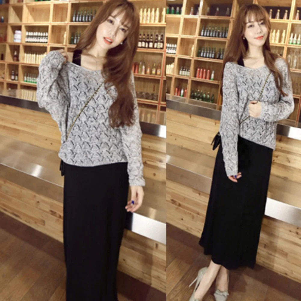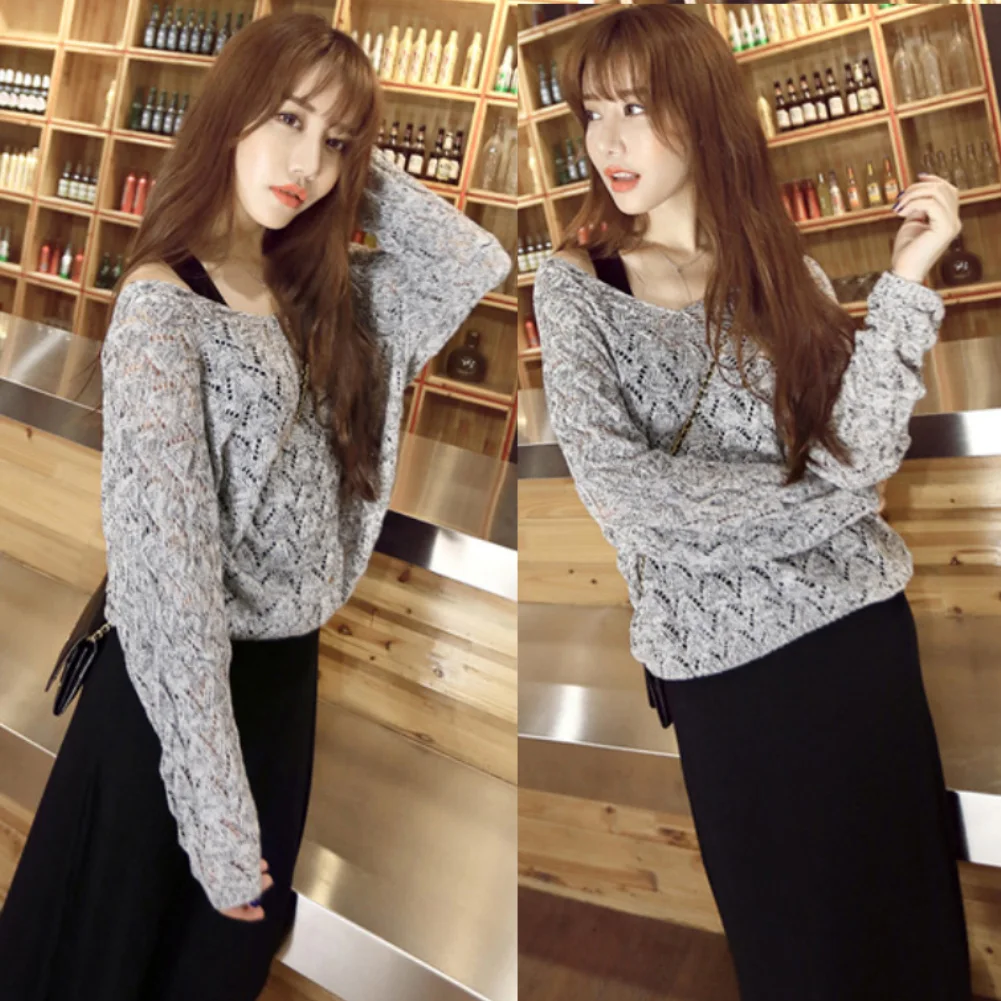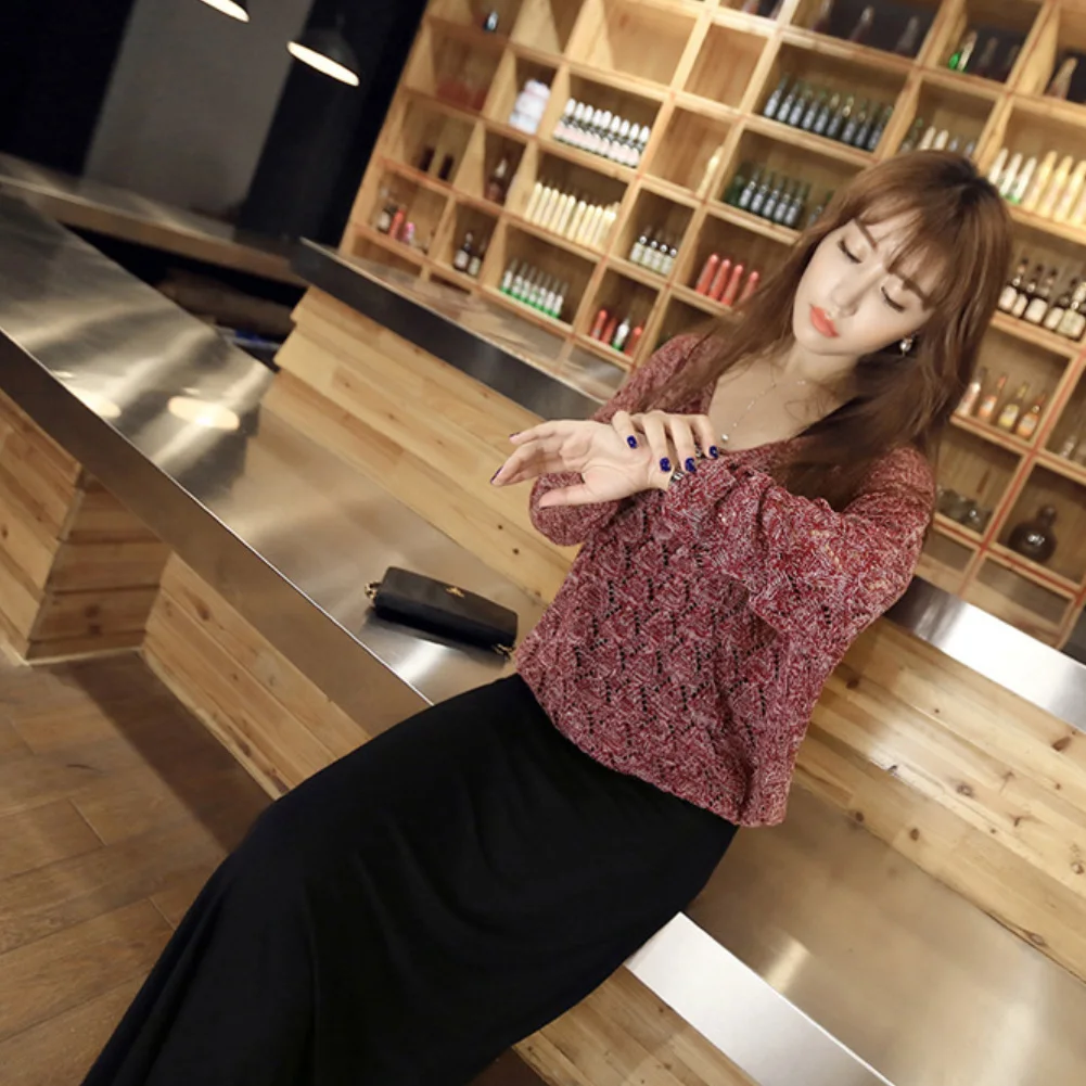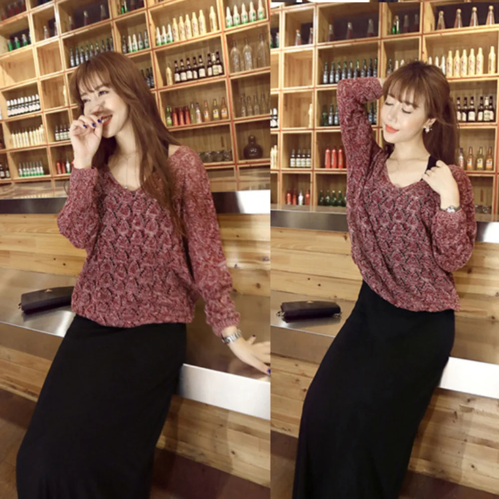 Модный женский однотонный вязаный пуловер с длинным рукавом и V-образным вырезом