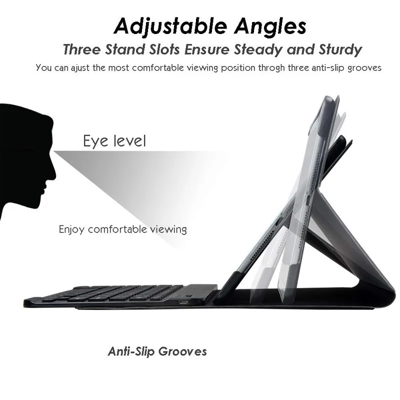 Съемный Bluetooth клавиатура Клавиатура кожаный чехол Обложка для iPad 10,2 "7th Gen/Air 10,5 Особенности: Модель: для Apple iPad 10,2 7th Gen 2019/воздуха 3rd Gen 2019 / Pro 10,5 2017 Чистый металл Размеры: 25,5 x 18,5x1,8 см Размер упаковки: 27x20 x 2,3 см Кожаный материал корпуса: Суперволокно, темно-бархат Материал клавиатуры: АБС-пластик Пластик Чип Bluetooth: bluetooth 3,0 Расстояние интерфейса: 10 м Рейтинг клавиатуры: английский Емкость аккумулятора: 180 мА Время в режиме ожидания: 80 дней Непрерывное время работы: 60 ч Время зарядки: 1,5-2 чПосылка список:
