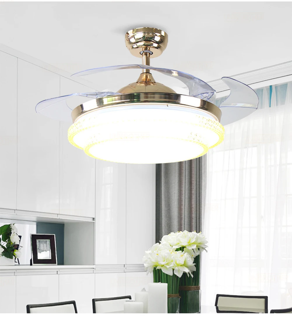 Потолочный вентилятор + лампа с пультом дистанционного управления акриловый лист led для гостиной столовой комнаты ventilador невидимые листья украшение дома