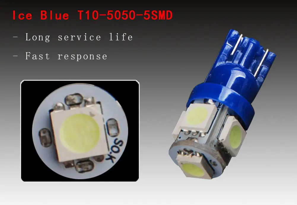 Структура: используется мощный светодиодный светильник 5050 SMD, а лампа имеет клиновидную базу T10.