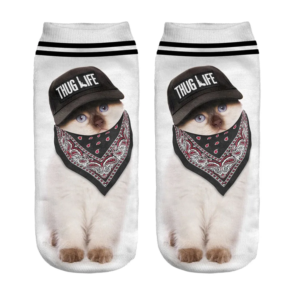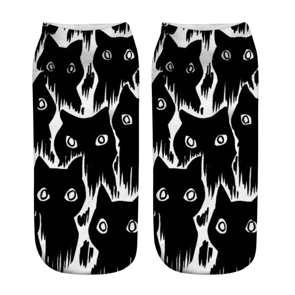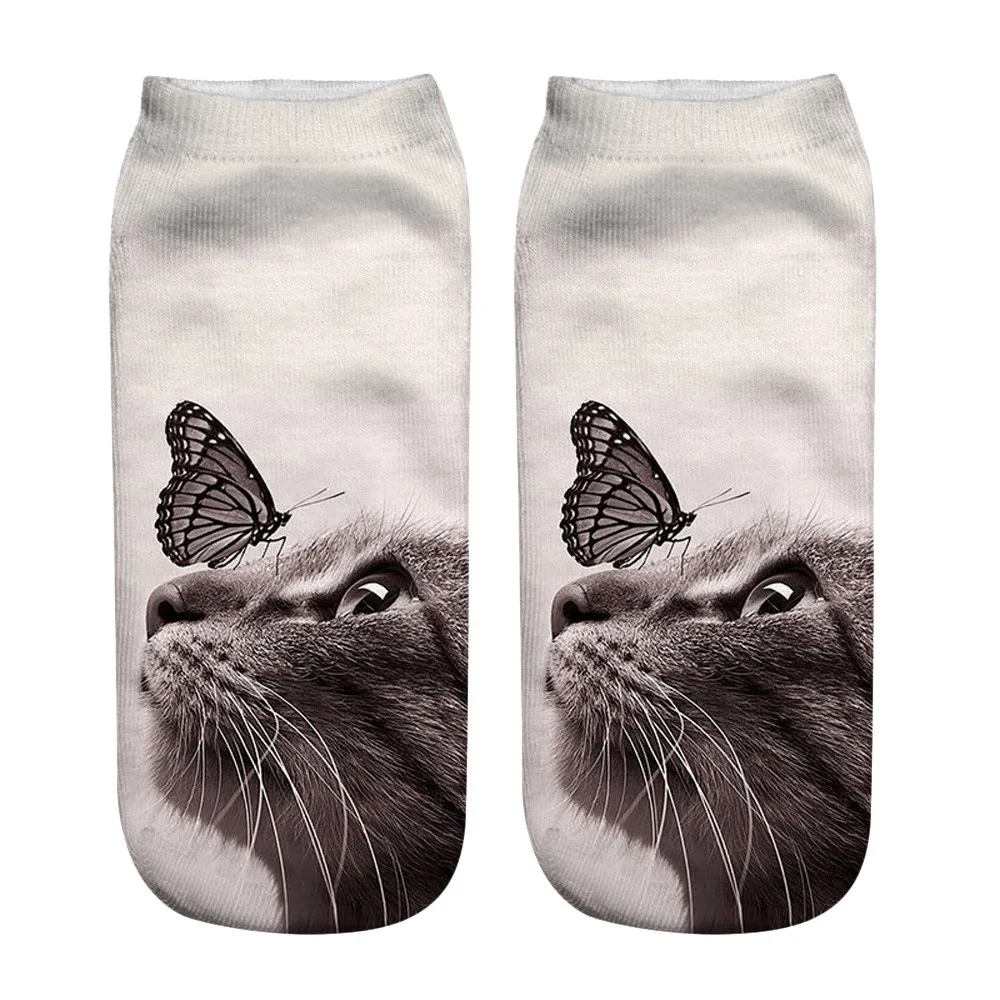 Популярные забавные короткие носки унисекс с 3D принтом кота, ножные носки, повседневные носки Особенности 100% Новинка и высокое качество Количество: 1 пара Высоко-качественные и модные Материал: полиэстер Тип узора: принт кошки Длина: около 20 см Посылка включает: 1 пара носков