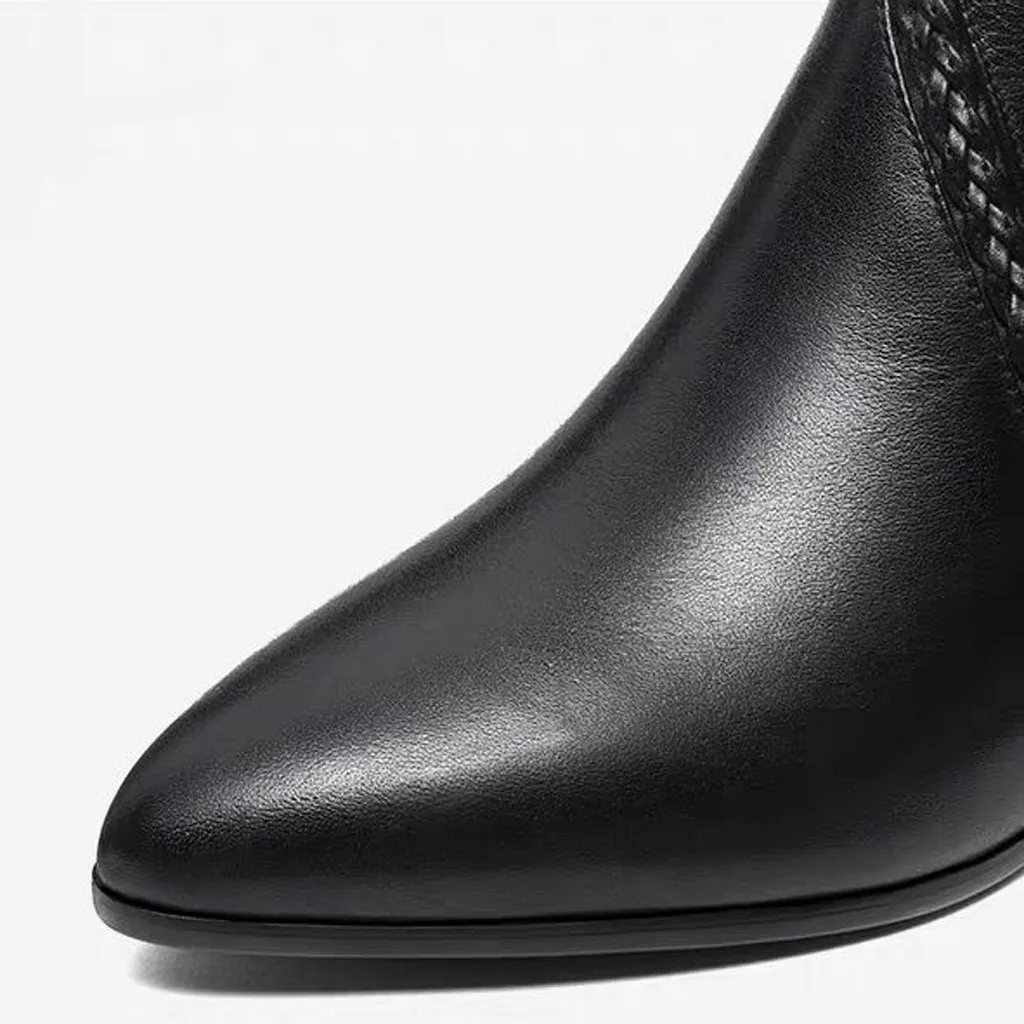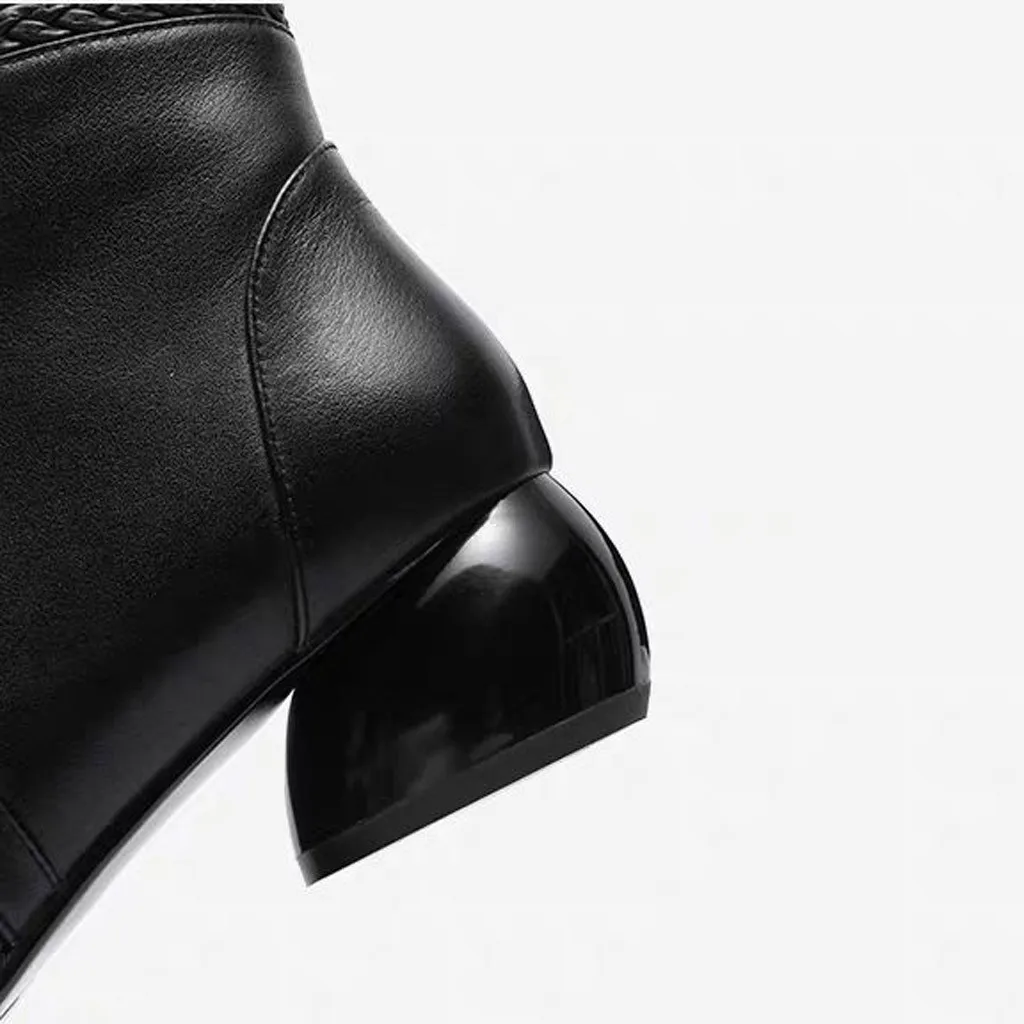 Женские зимние ботильоны с острым носком и боковой молнией; Повседневные Ботинки на каблуке с круглым носком