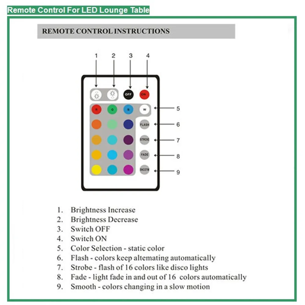 Название продукта: коктейльный стол (подвижный/водонепроницаемый) Материал изделия: полиэтилен Продукт Размеры: 45xH110cm 38xH83cm 48xH83cm 56xH105cm 60xH110cm 59xH110cm Цвет изделия: натуральный цвет (молочно-белый) Диапазон напряжения продукта: 100-240 В Напряжение постоянного тока продукта: 5V1A Характеристики продукта: RGB + W (16 монохромных выбор, 4 режима преобразования) 1. С пультом дистанционного управления и переключателем 2. Перезаряжаемая литиевая батарея (2000 мАч) постоянного тока: 5V1A 3. Время зарядки/использования: 4-6 часов/8-10 часов Упаковочный лист продукта: 1 шт. Место проведения: пляж/ресторан/бар/КТВ/двор/сад/бассейн/свадьба сцены/большой релиз сайт украшения.