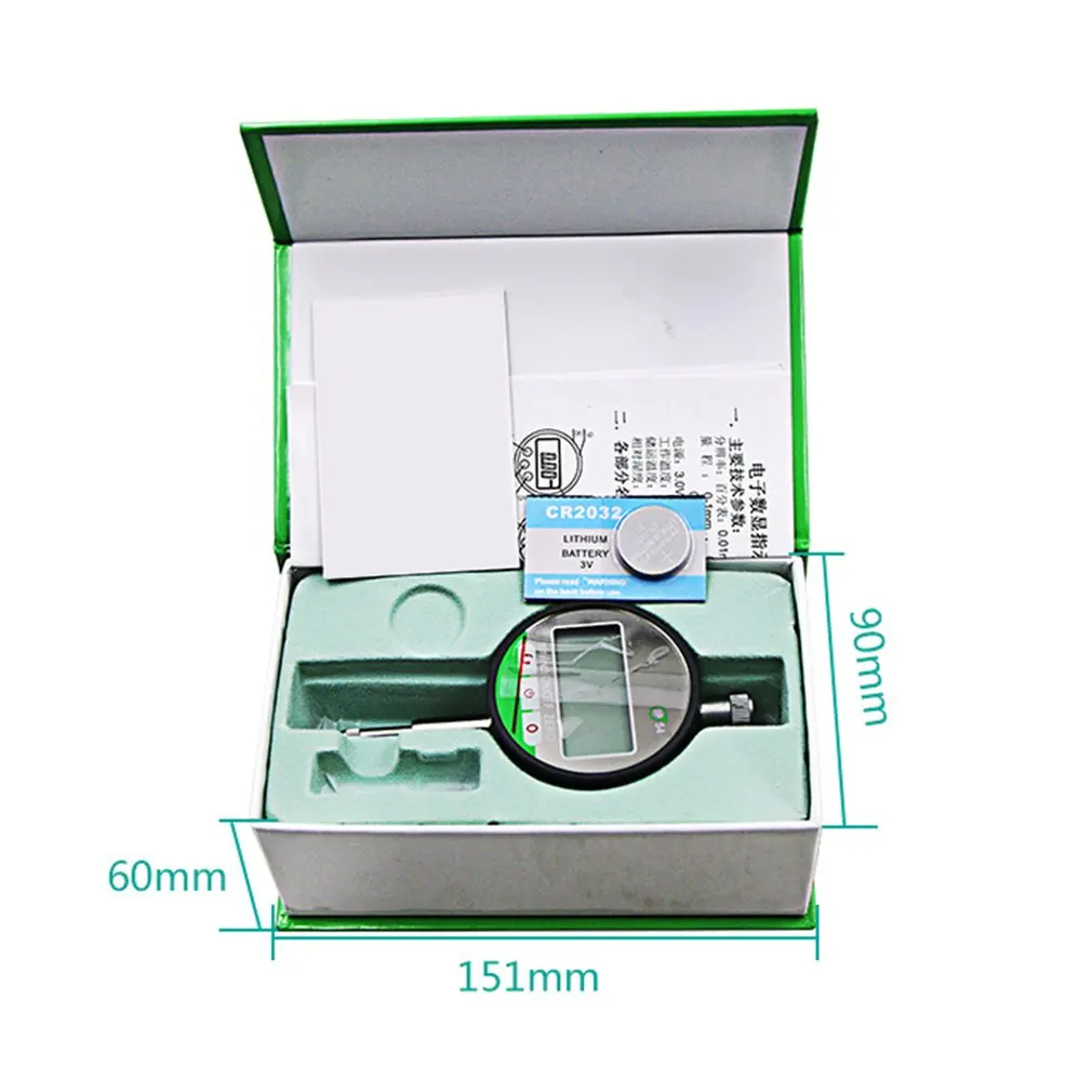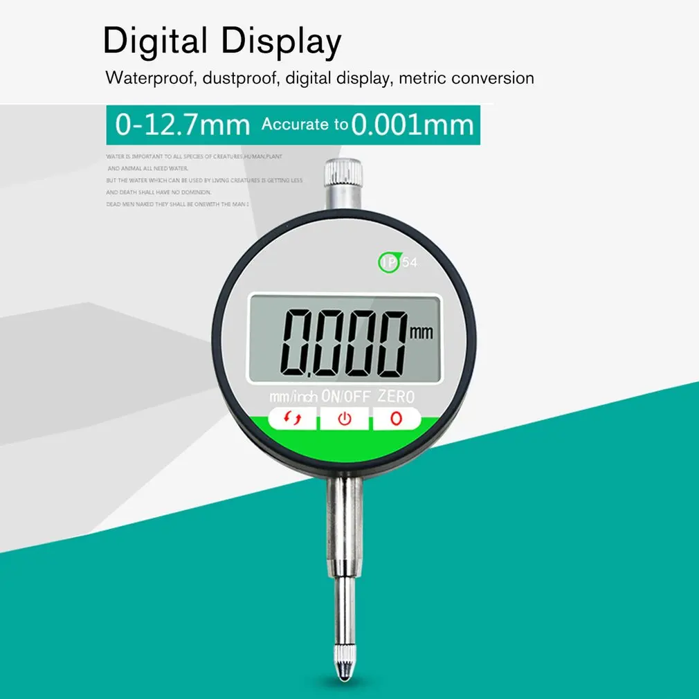 1.It is an inch and metric digital indicator with LCD for measuring surface variations that has measurement range of 12.7mm and a resolution 0.001/0.01mm, a lug back, a M2.5 stem diameter.