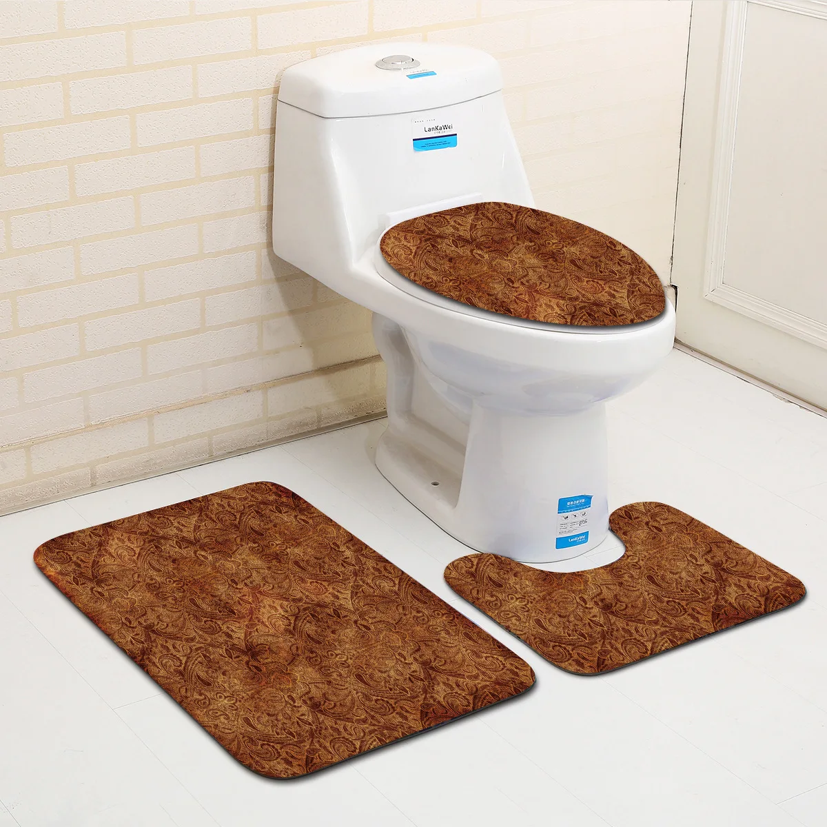 2. Размер: 3Шт. (в том числе U-shape форме, благодаря чему создается ощущение невесомости с коврик 37,5x45 см, прямоугольные ковры 75x45 см, чехол для крышки унитаза 35x45cm).