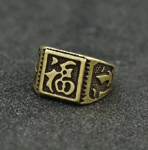 Китайская Чистая латунь резьба Бронзовая статуя коллекция ручной работы благословение кольцо Мужская...