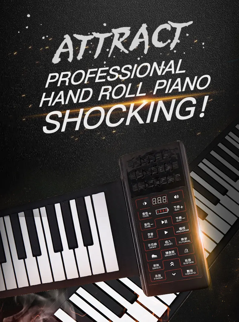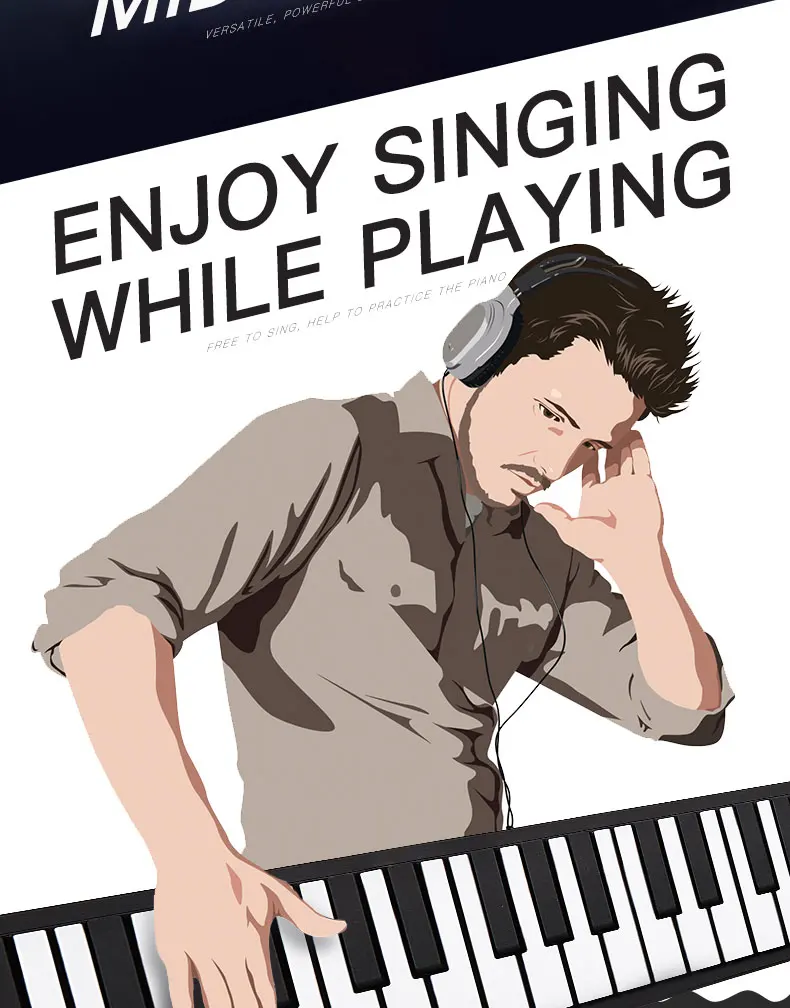 Использование силикона для защиты окружающей среды, нетоксичный и безвредный, мягкий и водонепроницаемый; Гибкий дизайн и портативный размер позволяют легко играть на пианино в любое время и в любом месте.