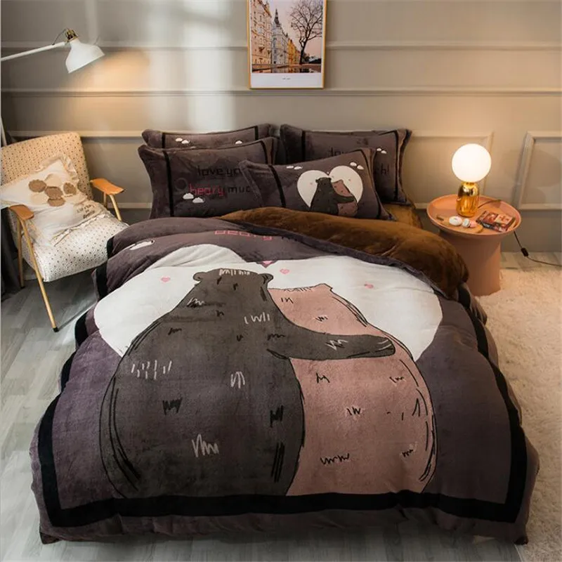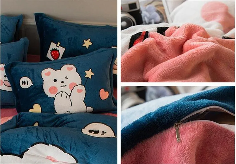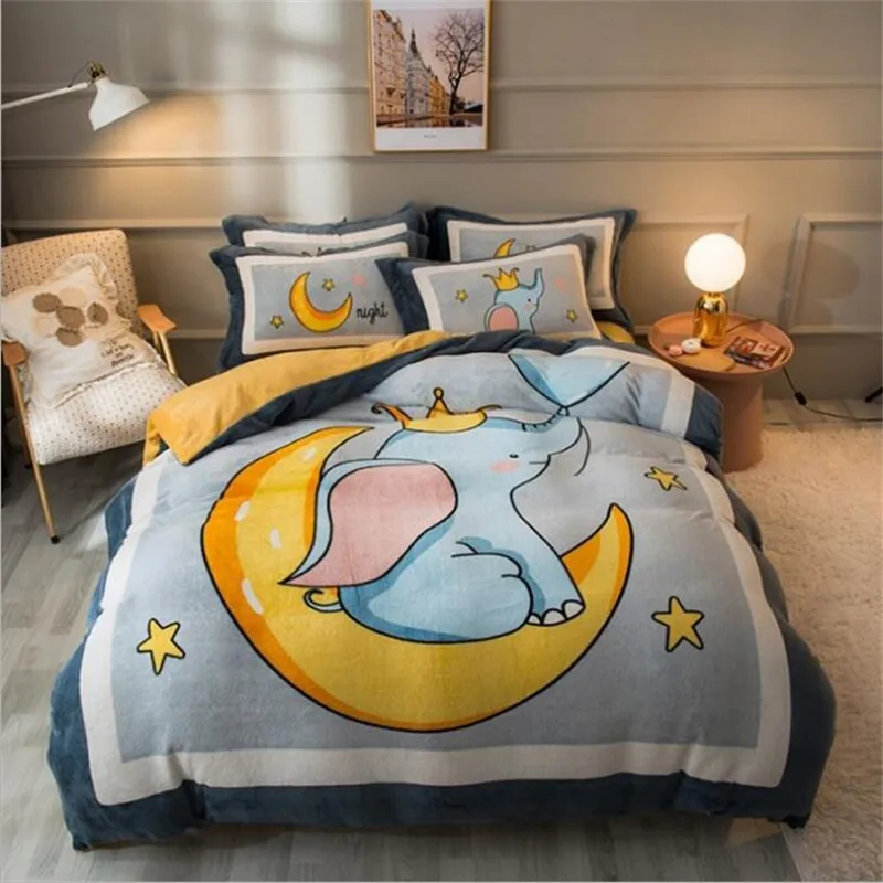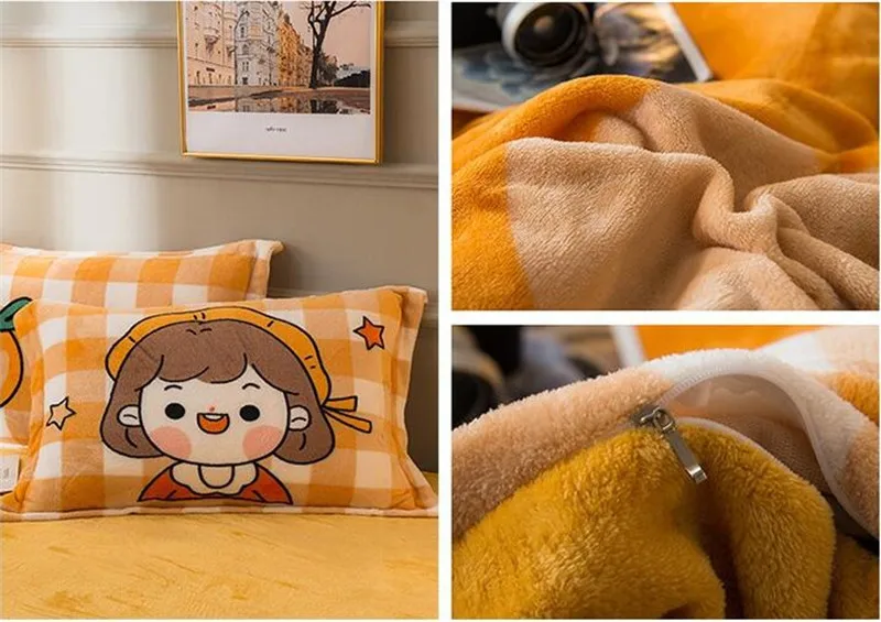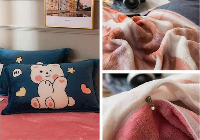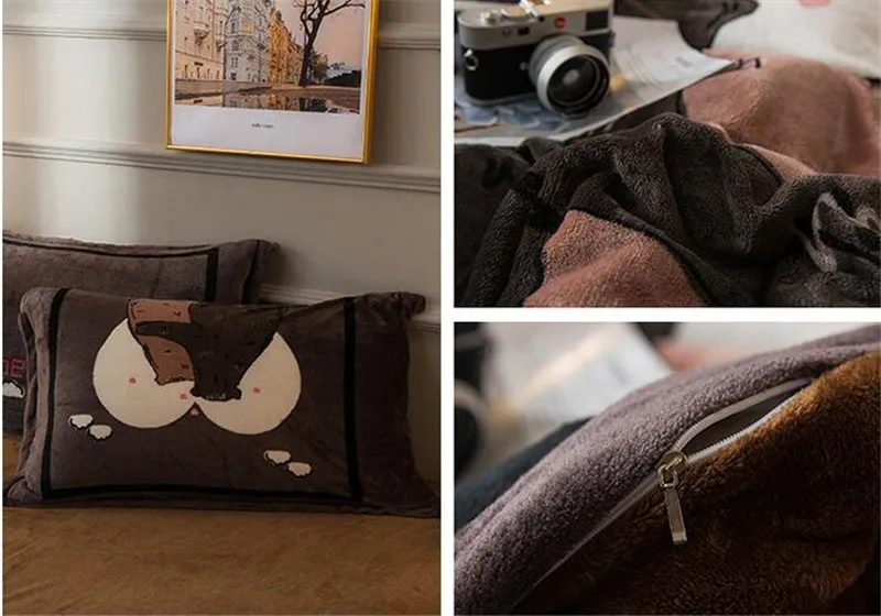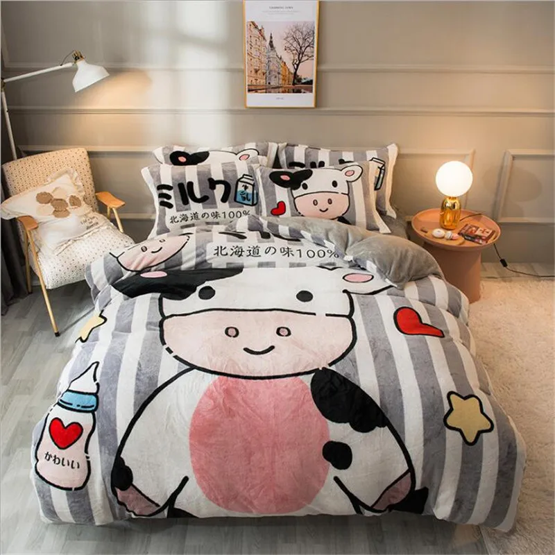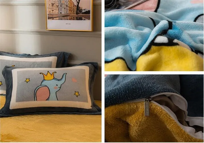 Заводская распродажа, бархатное одеяло из четырех частей, зимнее плотное теплое однотонное покрывало с рисунком из мультфильма, двуспальное стеганое одеяло, простыня, Pillowcae
