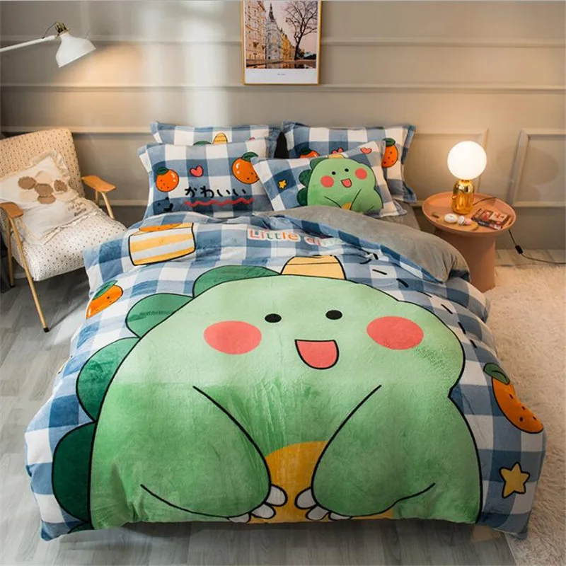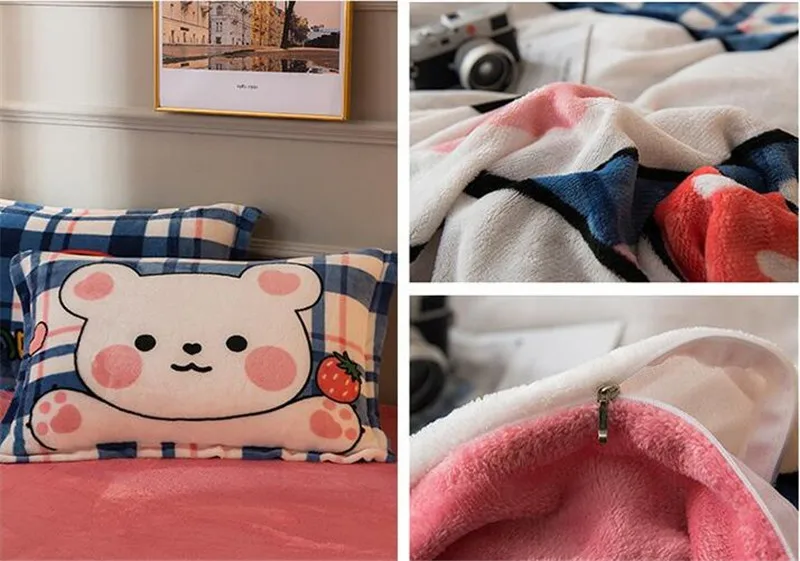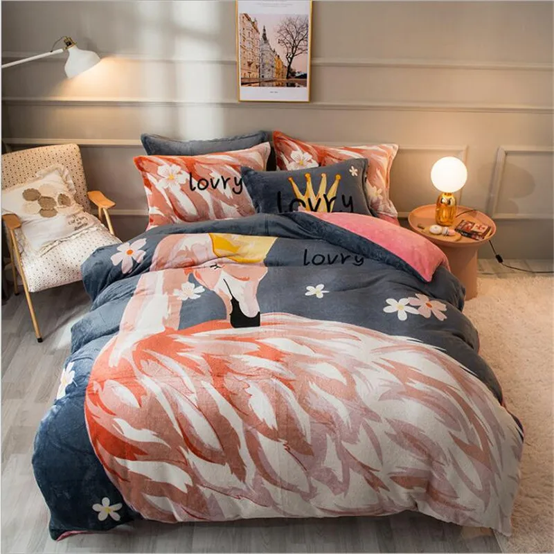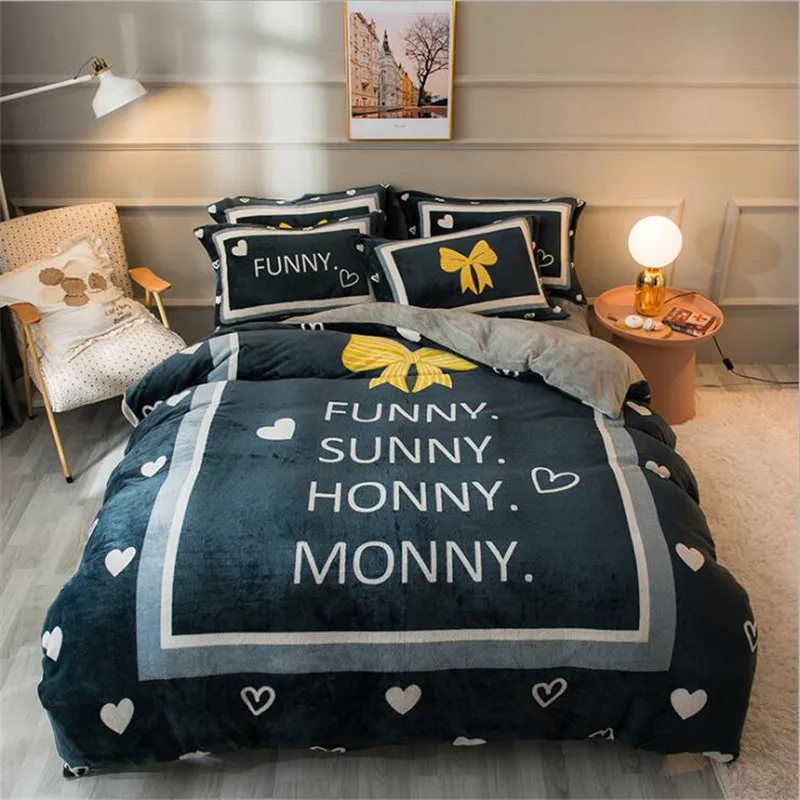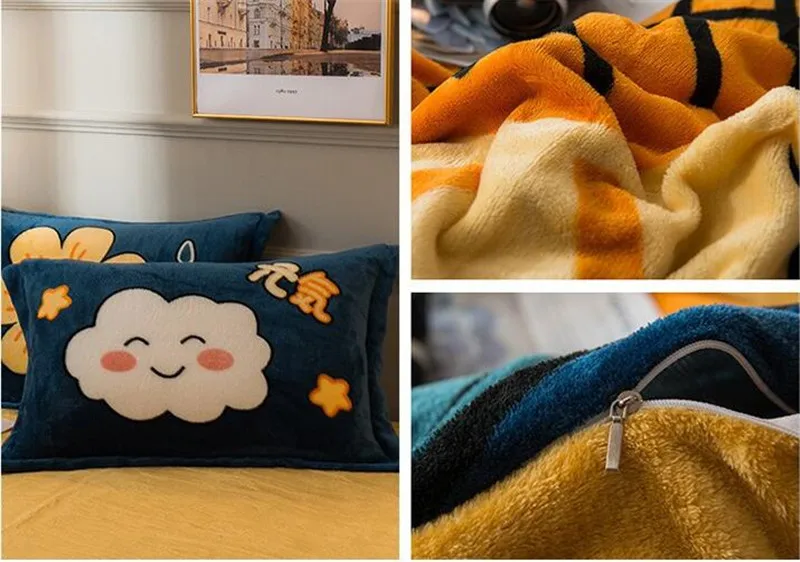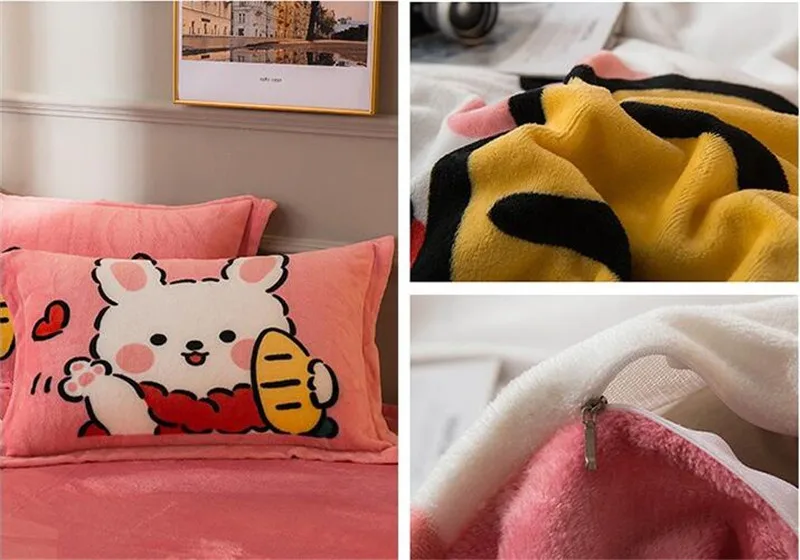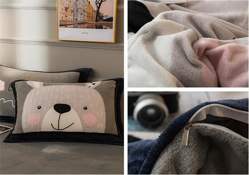 Заводская распродажа, бархатное одеяло из четырех частей, зимнее плотное теплое однотонное покрывало с рисунком из мультфильма, двуспальное стеганое одеяло, простыня, Pillowcae