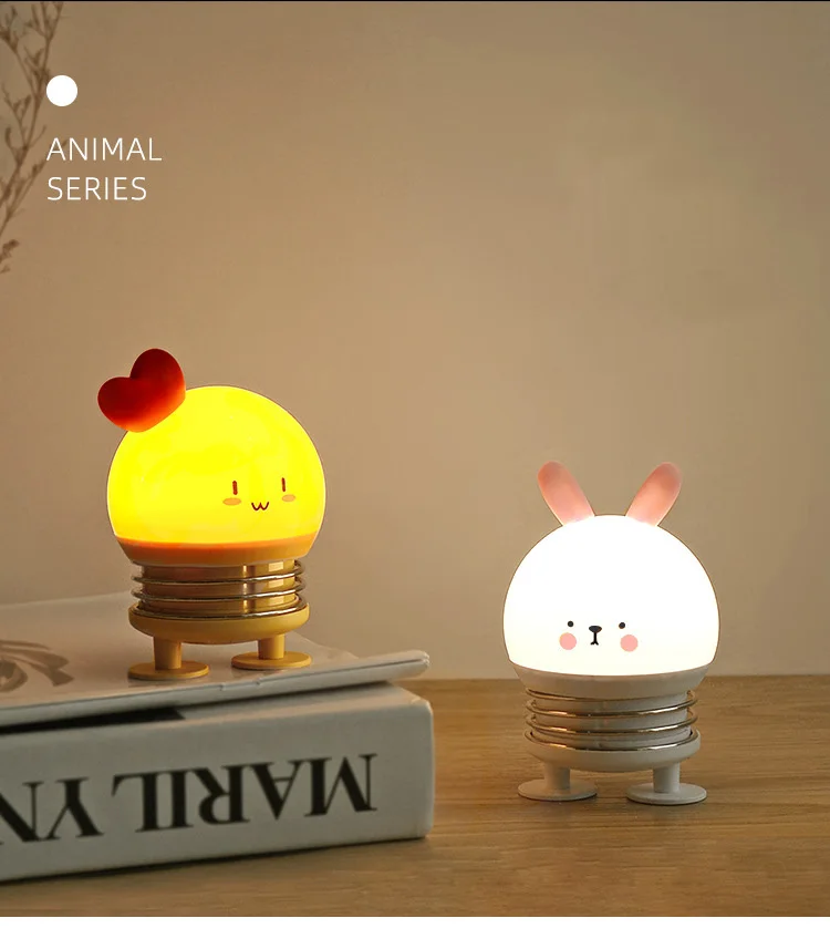 Весенний маленький Ночной светильник, многофункциональная детская настольная декоративная лампа, милое маленькое животное, пресс, пружинный переключатель, декомпрессия