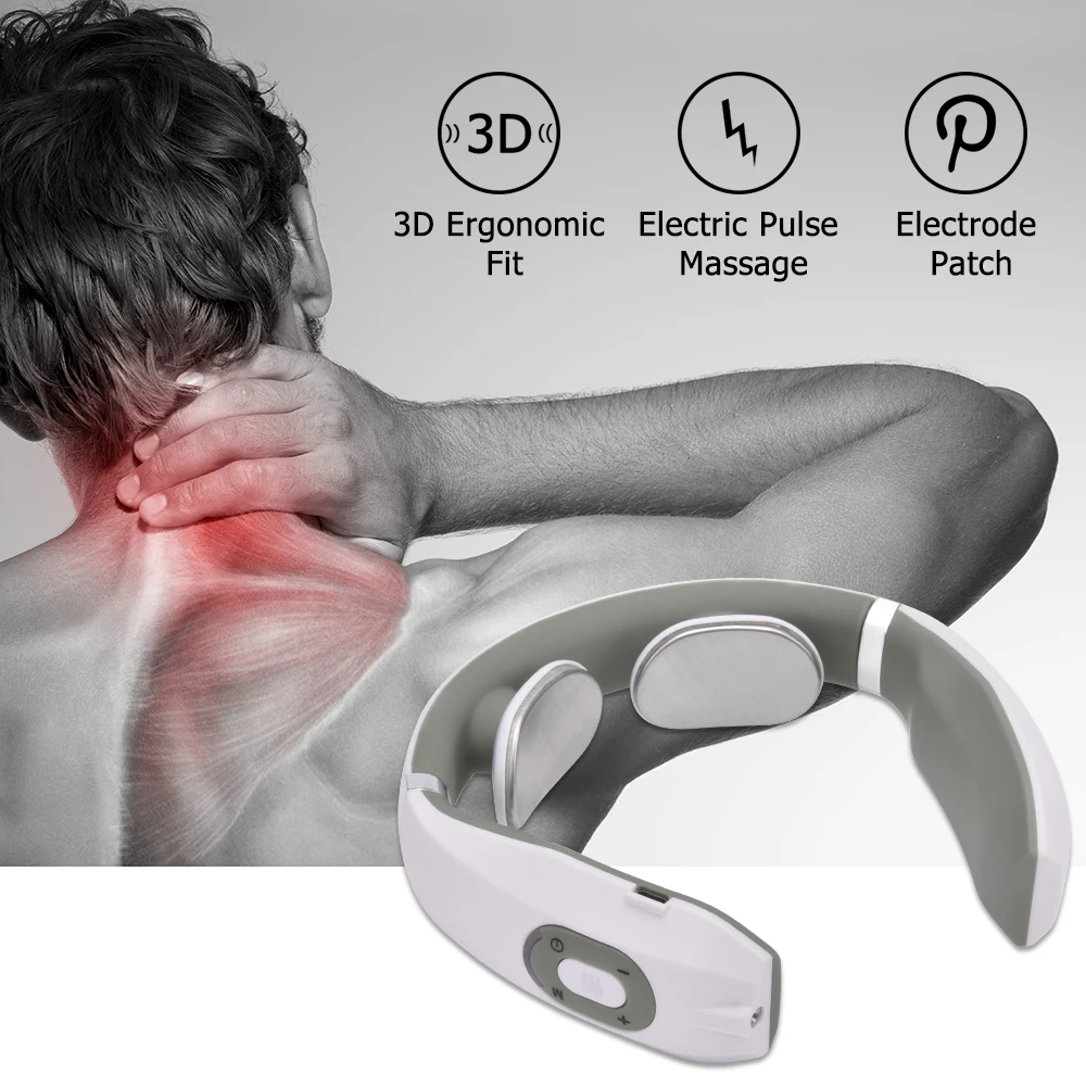 Electric Pulse Neck Massager Battery Powered Cervical Traction Therapy Massage Stimulator Pain Relief