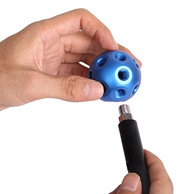 Он имеет 18 отверстий и все они отмечены оборудованием. 99% точность положения отверстия. Волшебный шар имеет три винта и три соединительных палочки, вы можете свободно комбинировать неизмеримые способы. С винтами и соединением Палочки, волшебный шар может стать мини-светильник, шаровая Головка, база вспышки и так далее. вы можете установить какой-то скоростной светильник, студийную вспышку на магическом шаре. пока вы можете создать, нет ничего невозможного!
