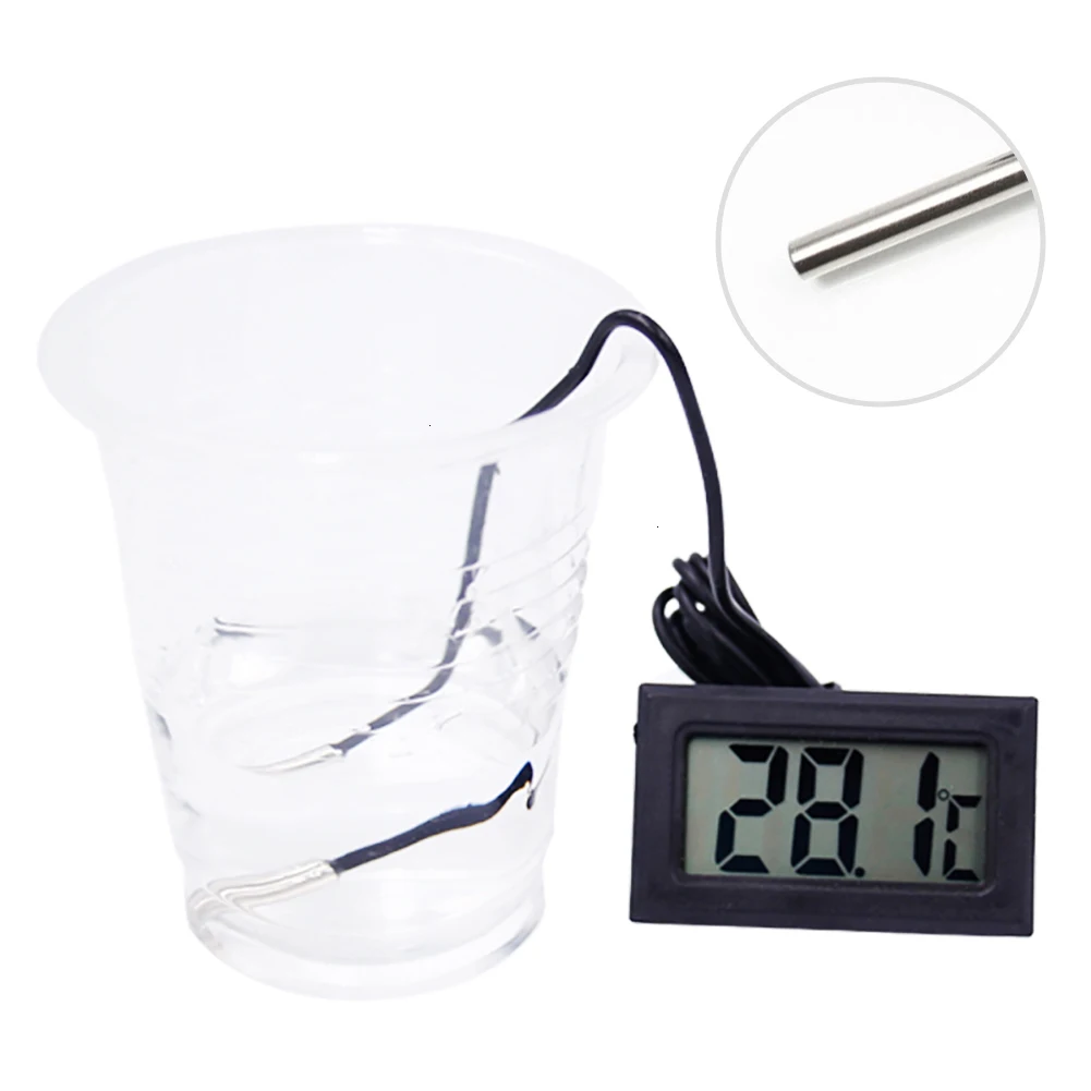 Особенности:Цифровой ЖК-термометр для аквариумной морозильной камеры Моделирование простой, элегантный, ЖК-панели встроенные соединения, влагостойкий, Сильный анти-помех, применяется для холодильных шкафов, счетчиков дисплея и Другие потребности измерения температуры и отображения различного оборудования. Диапазон температур: -50 ~ 110 °C Разрешение дисплея температуры: 0,1 Точность измерения температуры: ± 1 °C Питание: два аккумулятора LR44-питание ed (не входит в комплект) Длинный зонд: 1 метр Литой чехол-зондПараметры:Цвет: черный, белый Размер: 47*28*14 мм Вес 22 г Размер посылка: 60*70*20 мм