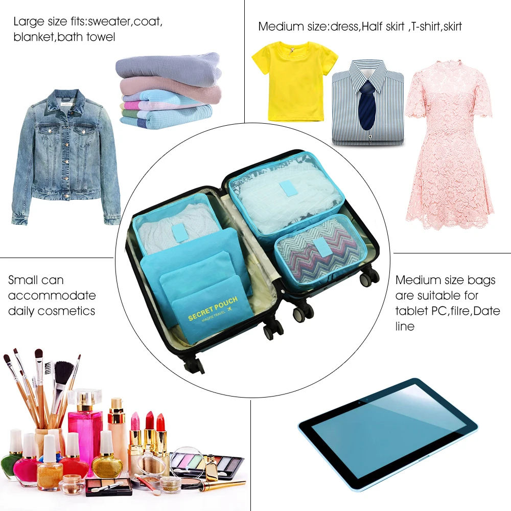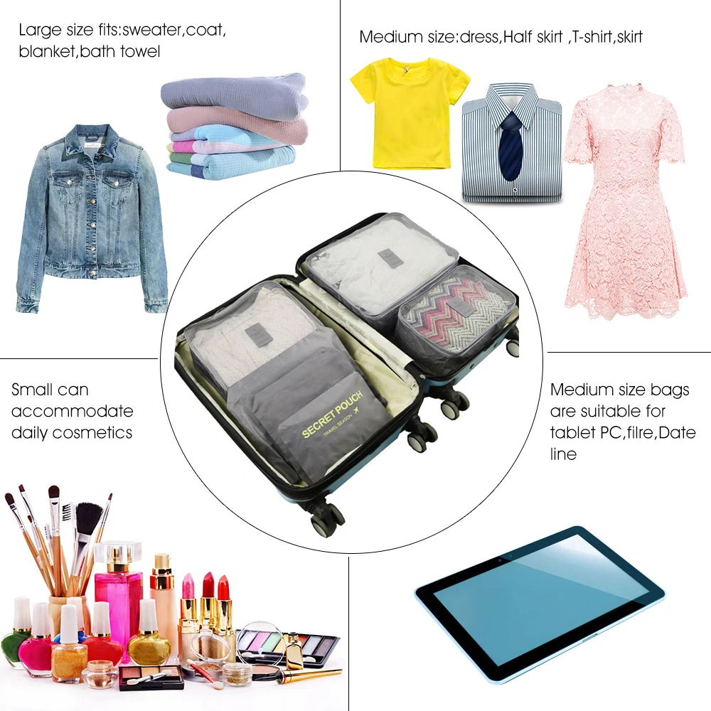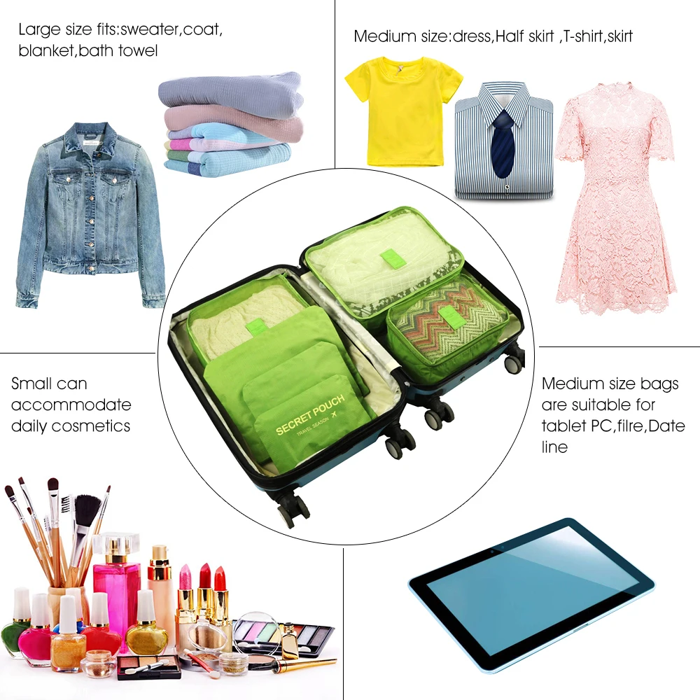 Когда вы отправляетесь в путешествие, у вас всегда возникают проблемы с сортировкой множества вещей. отсутствие багажа приводит к плохему настроению. теперь наша продукция обеспечит удобство для вашего путешествия. набор из 6 дорожных сумок для хранения может вернуть аккуратные путешествия, а легкие сумки для хранения уменьшат нагрузку на путешествия.