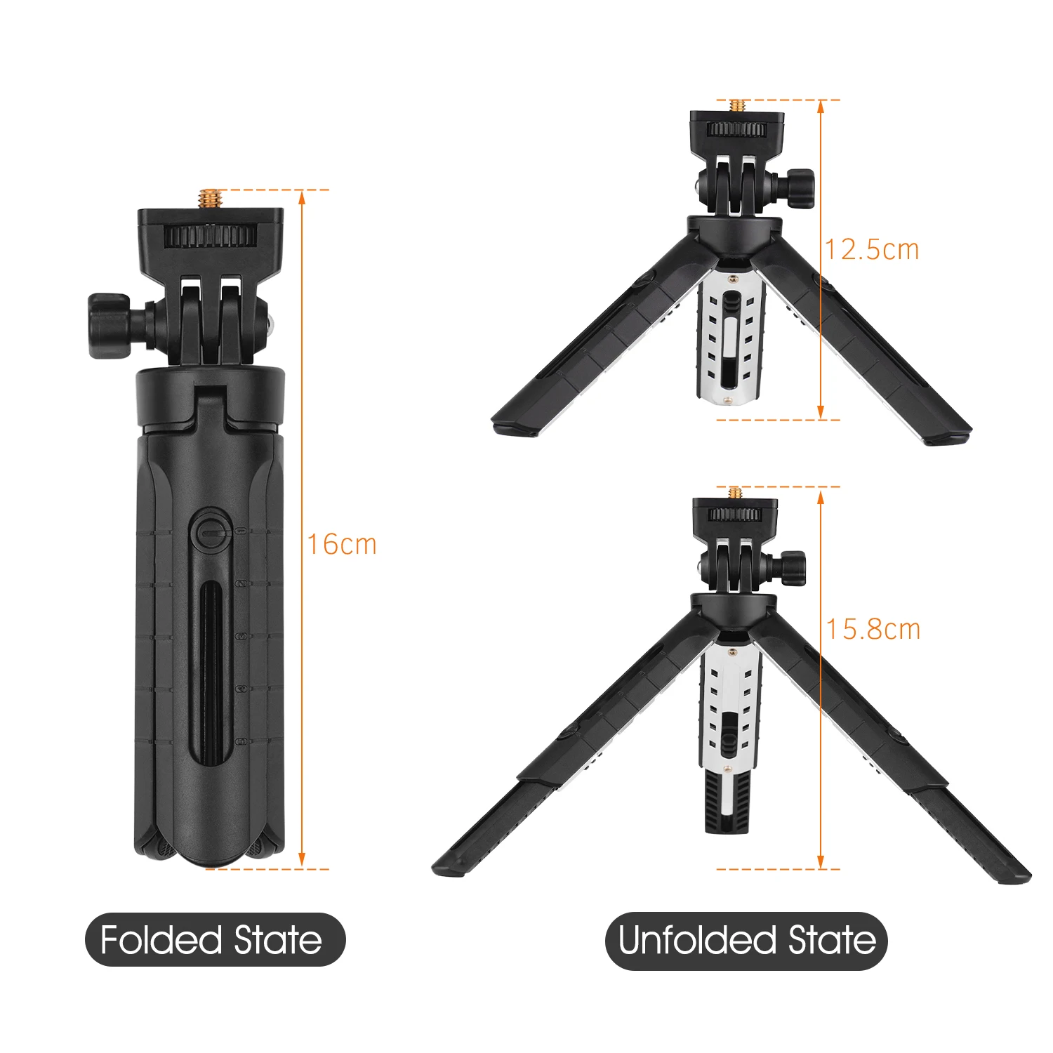 Настольный мини-штатив с 1/4 "монтажным гнездом, подходит для серии DSLR/беззеркальных камер, DV, видеокамер, вспышек и светодиодных осветительных приборов.