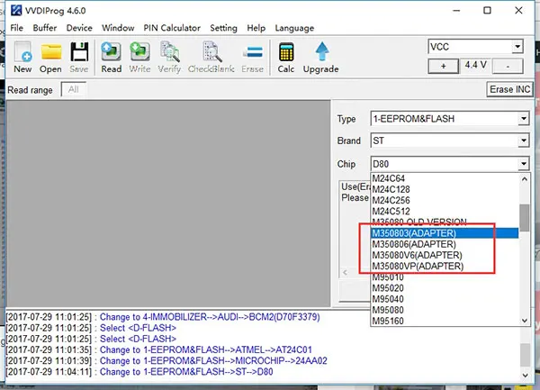 VVDI Prog Add Function D80 (адаптер), D160 (адаптер), M350803 (адаптер), M350806 (адаптер), M35080V6 (адаптер),M35080VP (адаптер) опции в ->(нужен адаптер M35080/D80), они должны работать с адаптером M35080 D80. Адаптер M35080/D80 поддерживает чтение/запись и быстрое стирание данных Тип поддержки: M35080 M350803 M350806 M35080V6 M35080VP 080DOWQ T60DOWQ Используйте последнюю версию программного обеспечения, выше версии 4.6.1.