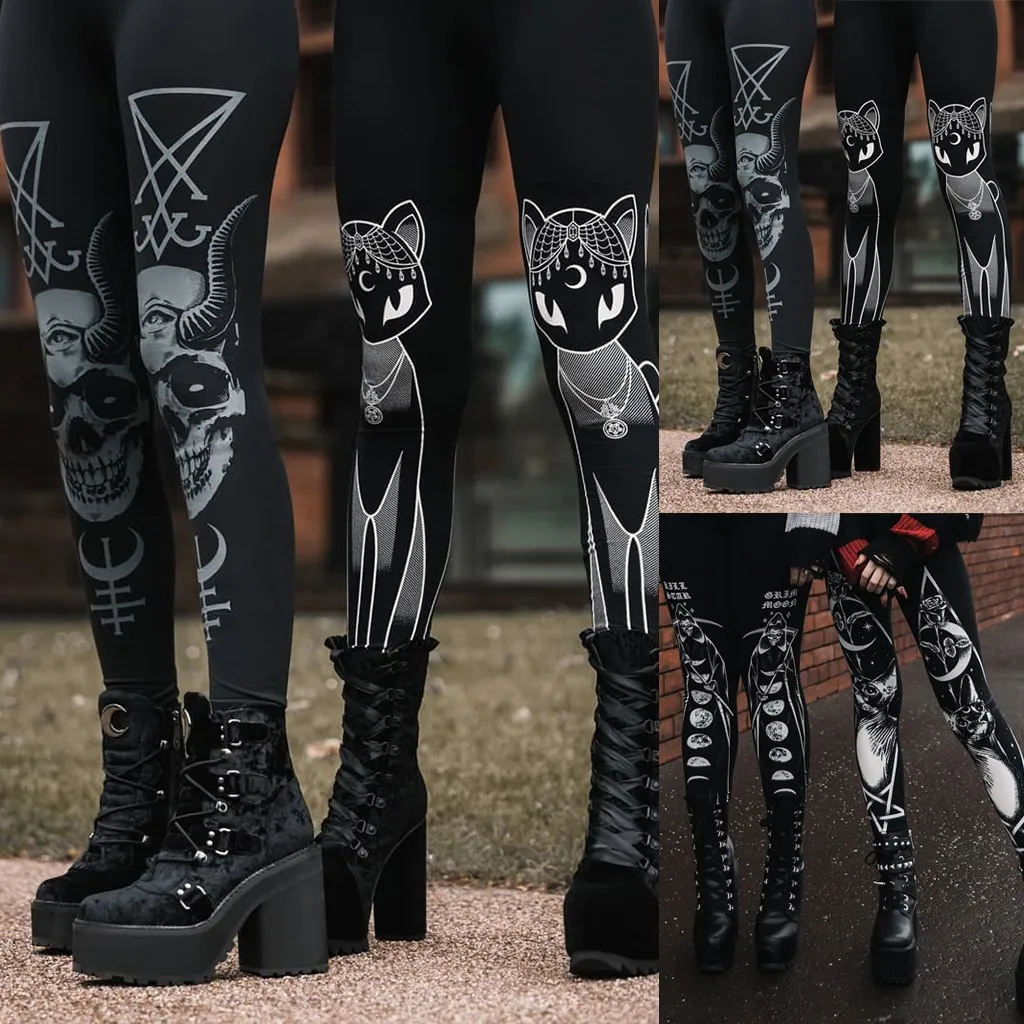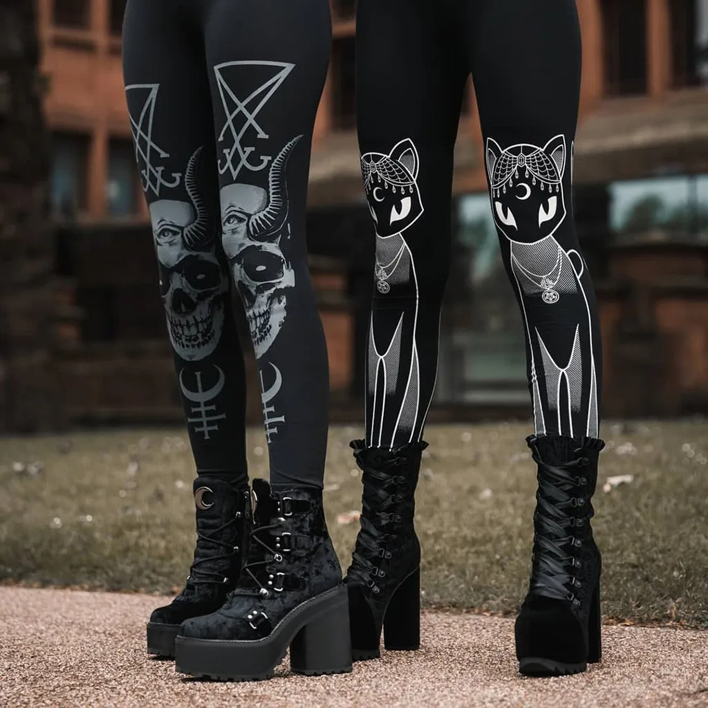 Fashion Women Gothic Style Stretch Skinny Leggings Goth Sneaker Print Tights