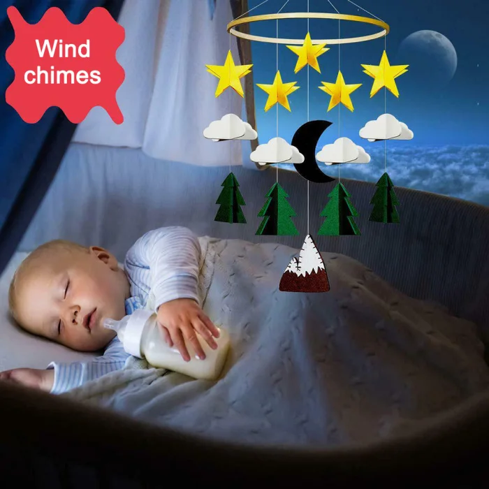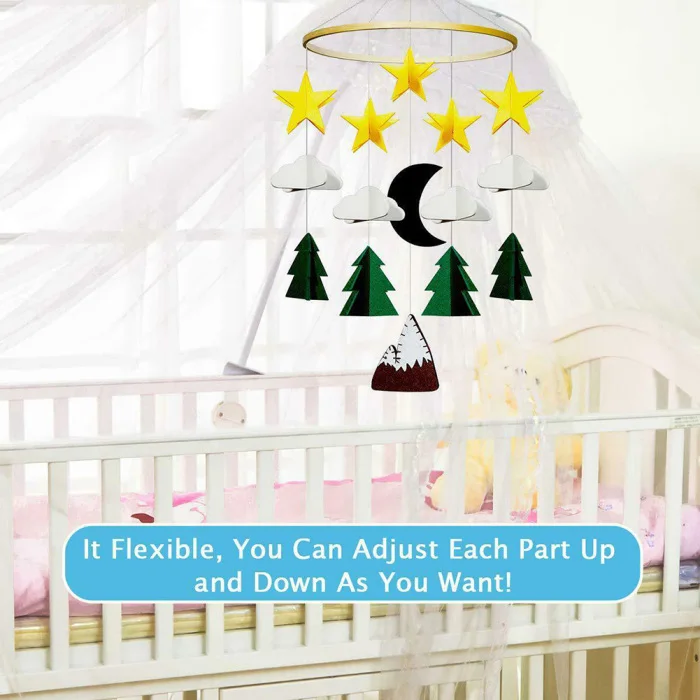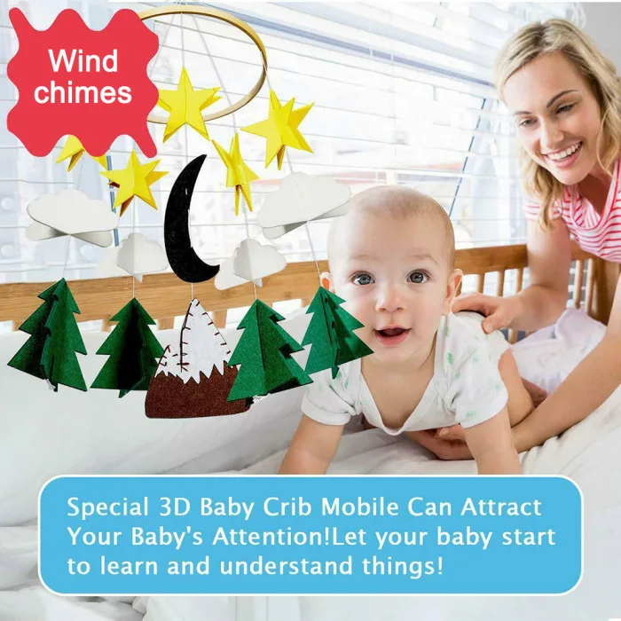 3D инновационный дизайн-Все декоративные части, такие как деревья, облака, звезды, принимает 3D дизайн! Он такой легкий, вы можете видеть, как он качается с ветерком. Это привлечет вашего ребенка, это забавно с его точки зрения.