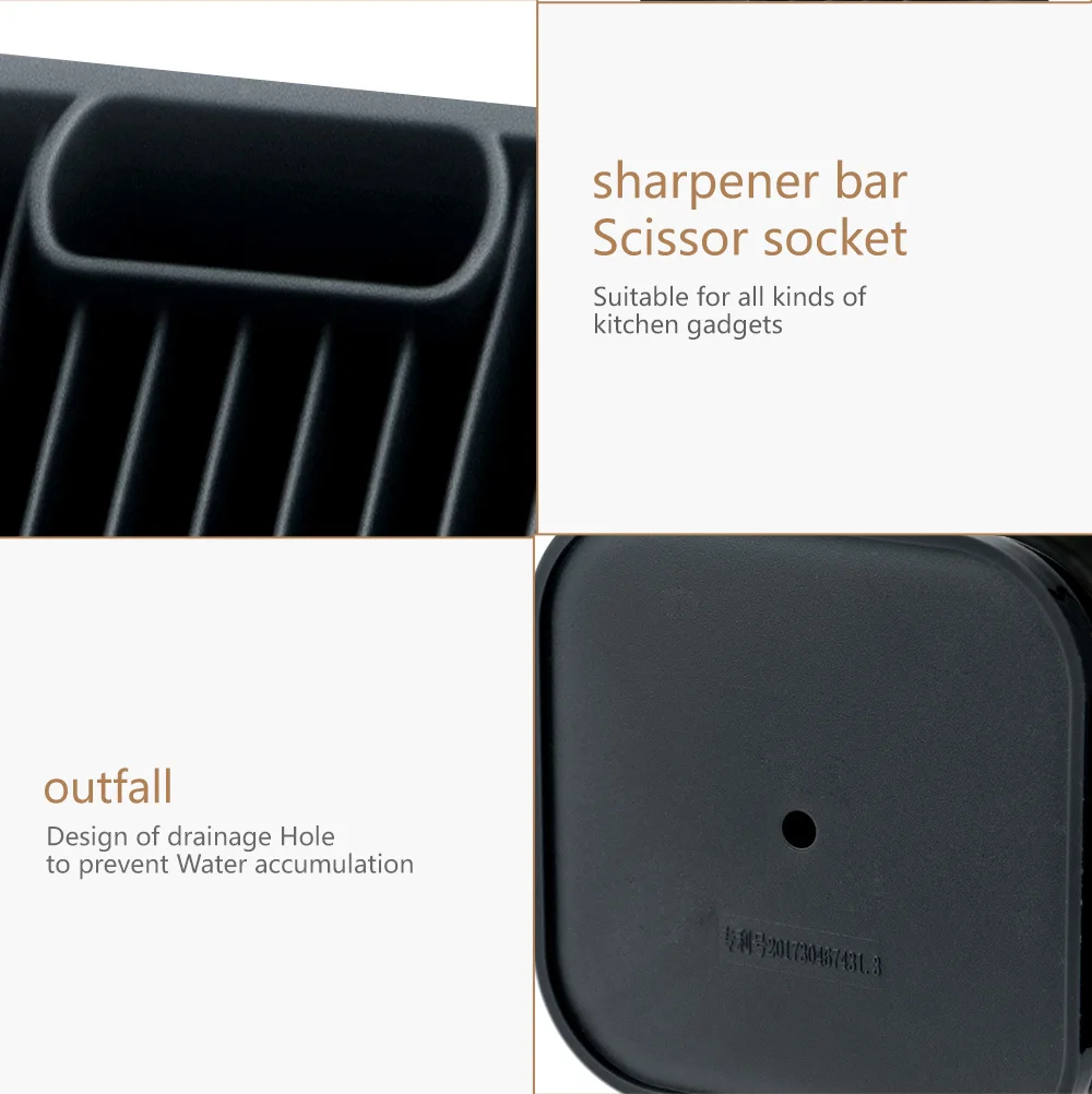 •-Вы когда-нибудь задавались вопросом, как вы можете очистить традиционные блоки ножей и что может быть в этих неочищенных прорезях ножей? Хорошо, с этим кухонным блоком ножей и дизайном, протачивая его под водой, легко очищает его, вода и любая настилка течет прямо из входа в нижней части. • •-Увеличьте пространство