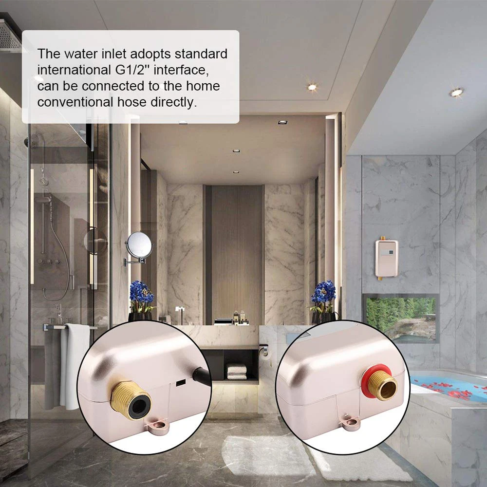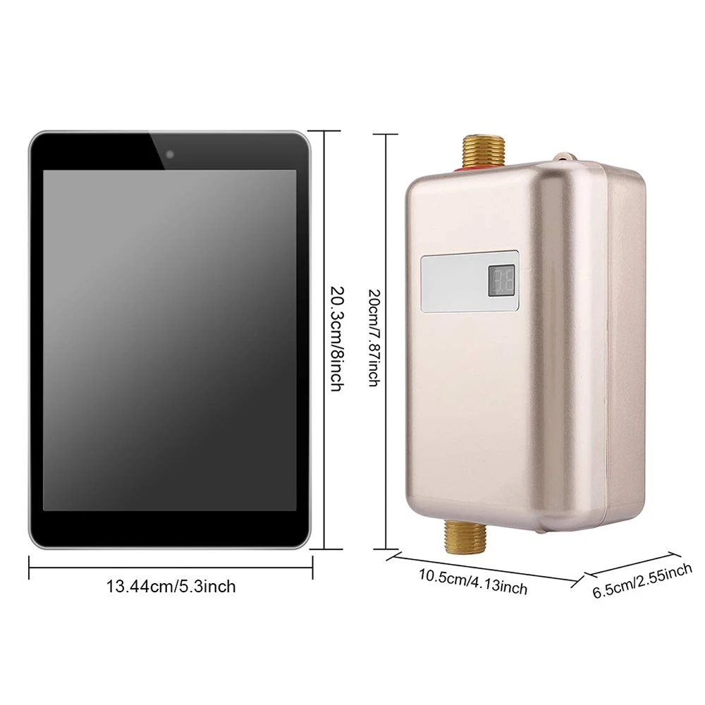 Электрический водонагреватель без резервуара, 3800 Вт мини термостатический водонагреватель Быстрая 3 секунды душ система горячей воды защита от утечки ЖК цифровой дисплей ● 3 секунды горячего, безопасного и интеллектуального, действительно термостат без ожидания, 0,1 секунды автоматическое отключение при утечке ● Электрический водонагреватель без резервуара мощностью 3800 Вт устраняет длительное ожидание, мгновенный нагрев, поэтому вы можете использовать горячую воду по своему усмотрению ● Подходит для универсальных водопроводов: диаметр дюйма (приток или отток). ● Различные виды защиты: защита от утечки, водонепроницаемость IPX4, защита от сухого нагрева, изоляция от воды и электричества, Автоматическое отключение питания в неактивном состоянии, автоматическое отключение от перегрева. ● Мини-корпус, легко устанавливается под ванной или кухонной раковиной для мытья посуды, еды, одежды, лиц и других функций. Особенности: Устройство защиты от утечки, защита от утечки: устройство, которое автоматически отключается в случае утечки Защита от брызг IPX4, Защита от сухости, защита от гидроэлектрической изоляции, Защита изоляции корпуса и другие многочисленные меры безопасности. Встроенное устройство защиты от протечек Автоматическое отключение без воды Автоматическое отключение при перегреве Автоматическое отключение без работы Нагревается и нагревается в течение трех секунд Хранение/без резервуара: мгновенное/без резервуара Вилка: вилка Австралии: 220 В, 3800 Вт Номинальное напряжение: 220 В Мощность (W):3800 Вт Степень водонепроницаемости: IPX4 Частота: 50 Гц Материал корпуса: АБС-пластик Нагревательный Материал: нержавеющая сталь 304 Начальное давление воды: 0,4-МПа Способ установки: настенный Диапазон температур воды: 30-60 ℃ Модель притока: вода поступает снизу Посылка 1 х водонагреватель с вилочным кабелем 1 х Набор установочных принадлежностей 1 х Руководство Советы: 1. При установке убедитесь, что сначала пропустите воду, затем включите питание. 2. Вертикальная установка изделия может продлить срок службы водонагревателя.