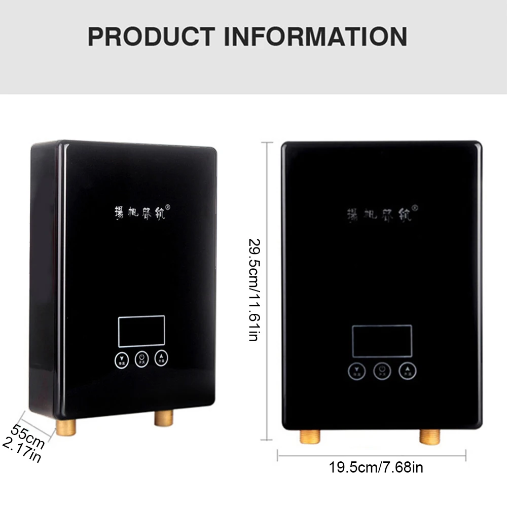 ●Мгновенный нагрев, безопасный и интеллектуальный, действительно термостат без ожидания, 0,1 секунды автоматическое отключение при утечке ● Электрический водонагреватель без резервуара мощностью 6500 Вт исключает длительное время ожидания, мгновенный нагрев, поэтому вы можете использовать горячую воду по своему усмотрению ● Подходит для универсальной водопроводной трубы: диаметр 1/2 дюйма (приток или отток). ● Различные средства защиты: защита от утечки, водонепроницаемость IPX4, защита от сухого нагрева, изоляция от воды и электричества, автоматическое отключение при неактивном состоянии, автоматическое отключение при перегреве. ● Мини-корпус, легко устанавливается под ванной или кухонной раковиной для мытья посуды, продуктов питания, одежды, лиц и других функций. Особенности: Устройство защиты от протекания, защита от протекания: устройство, которое автоматически обезопадает энергией в чехол от протекания Защита от брызг IPX4, Защита от высыхания, защита от гидроэлектрической изоляции, Защита корпуса от изоляции и другие различные меры безопасности. Встроенное устройство защиты от протечек Автоматическое отключение питания без воды Автоматическое отключение при превышении температуры Автоматическое отключение без работы Горячее и горячее в течение трех секунд Хранение/без резервуара: мгновенное/без резервуара Сертификат: CE Электрический круглый провод: мин 4 мм2 Штекер: проводка: 220 В, 6500 Вт Номинальное напряжение: 220 В Мощность (Вт):6500 Вт Степень водонепроницаемости: IPX4 Частота: 50 Гц Материал корпуса: АБС-пластик Нагревательный Материал: литой алюминий Начальное давление воды: 0,4-0.6MPa Способ установки: настенный Диапазон температур воды: 30-60 ℃ Модель притока: вода идет снизу Посылка входит: 1 x Мини-подогреватель для воды 1 набор винтов Советы: при установке обязательно пропустите воду, а затем включите питание. Вертикальная установка изделия может продлить срок службы водонагревателя.