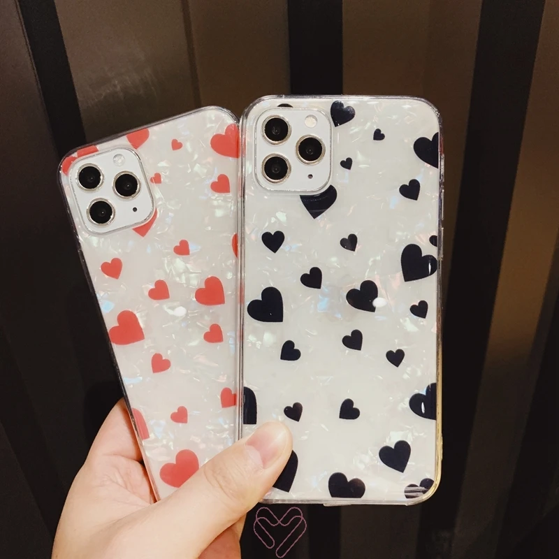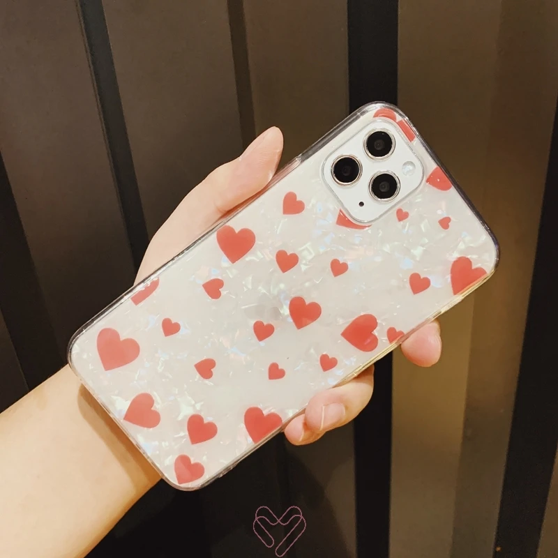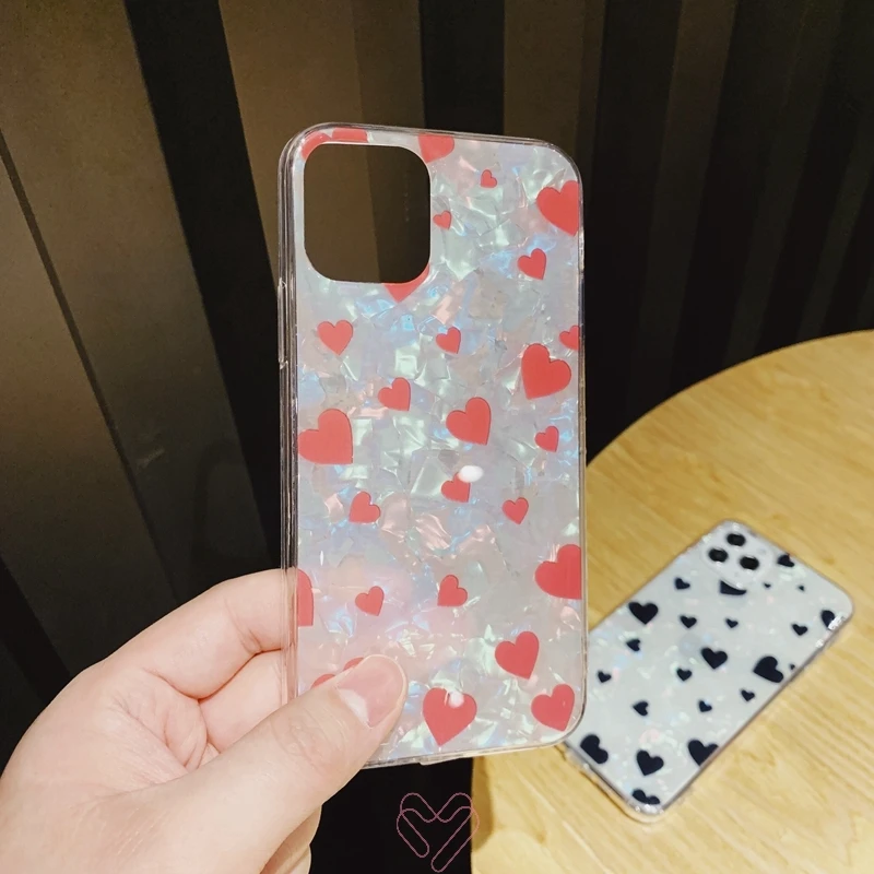 Glitter Pearlescent Shell Sparkle Love Heart Soft Silicone TPU Cover Case For iPhone X XR XS 11 Pro Max 8 7 6 6s Plus Coque Capa