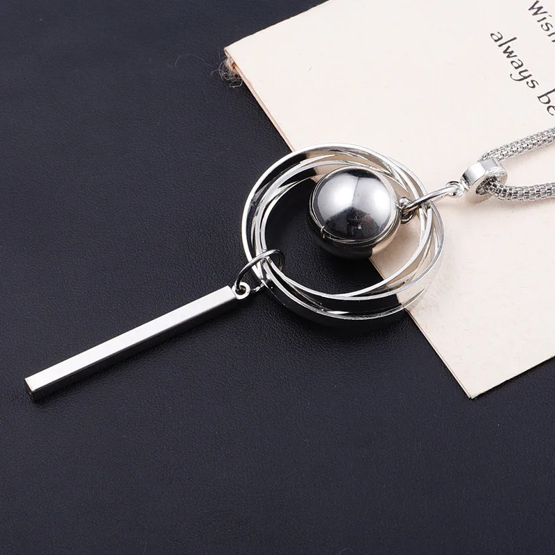 Korean Circle Geometric Beaded Pendant Necklace For Women Long Link Sweater Chain Necklaces Fashion Trendy Jewelry Gift