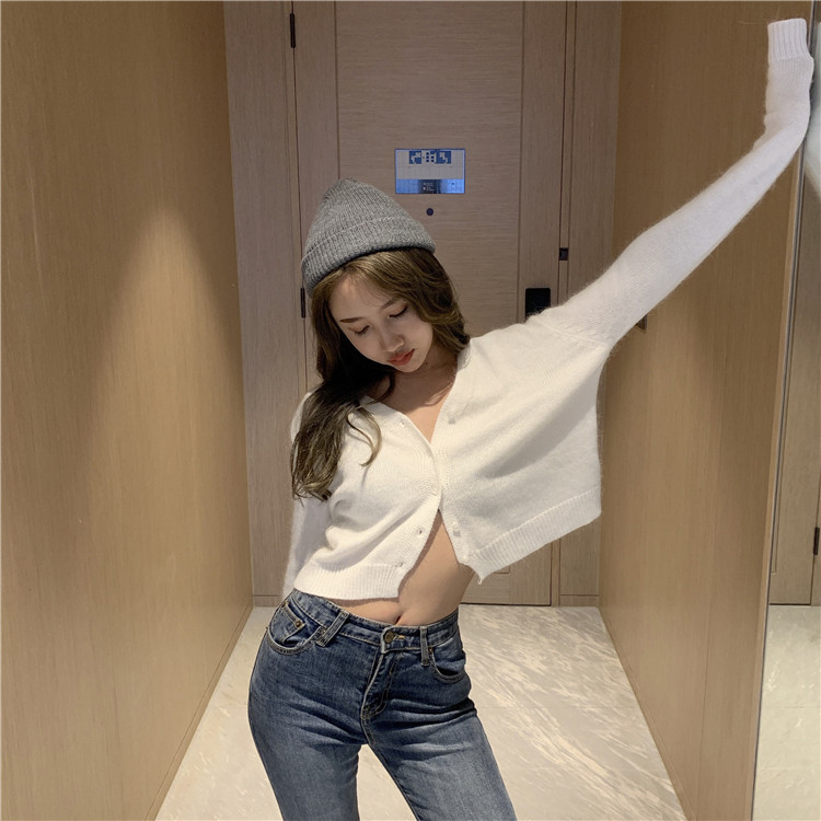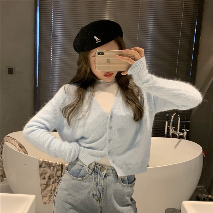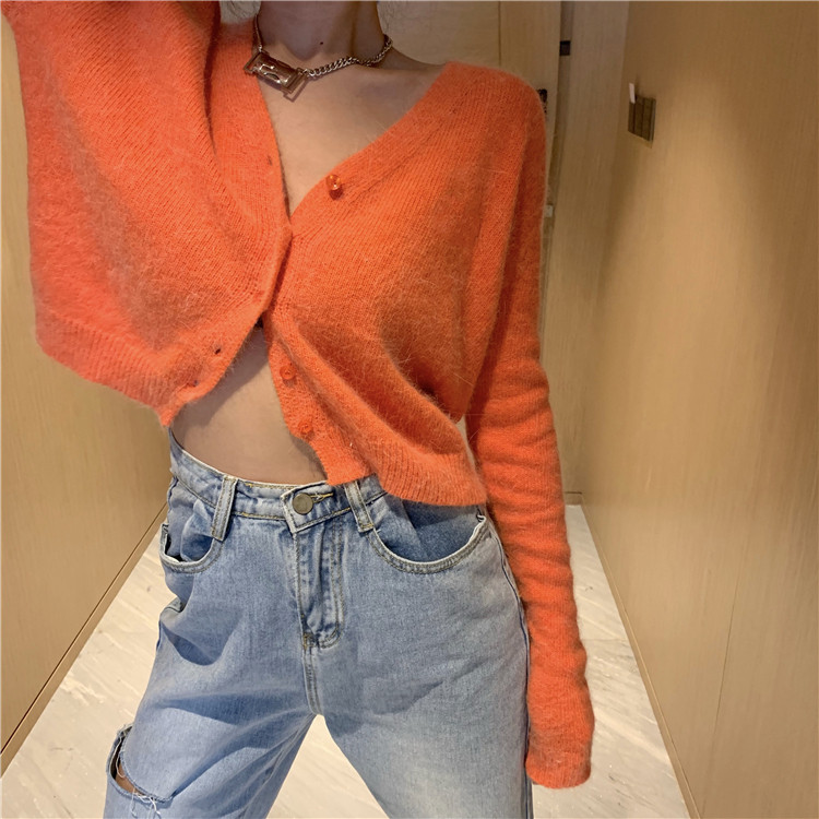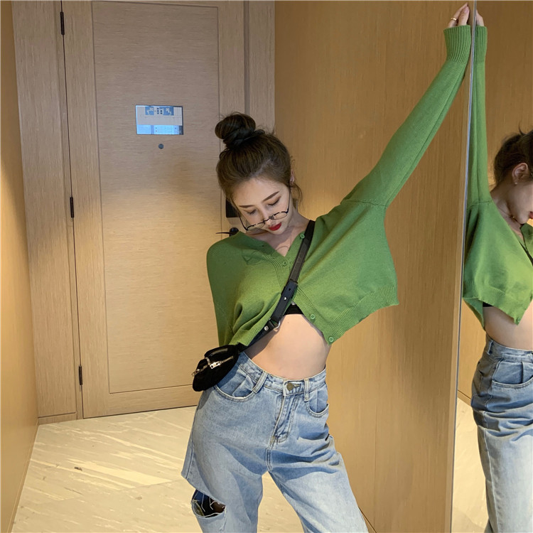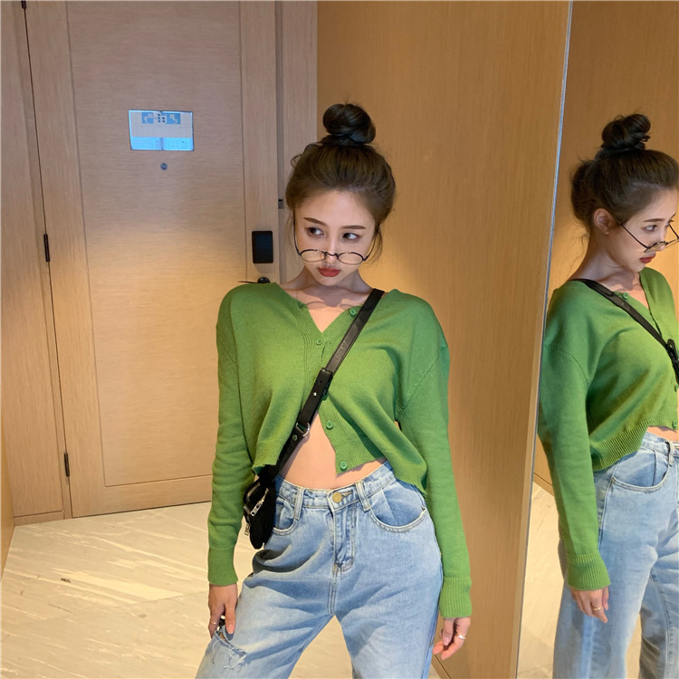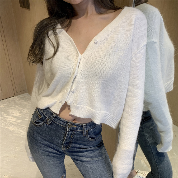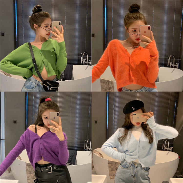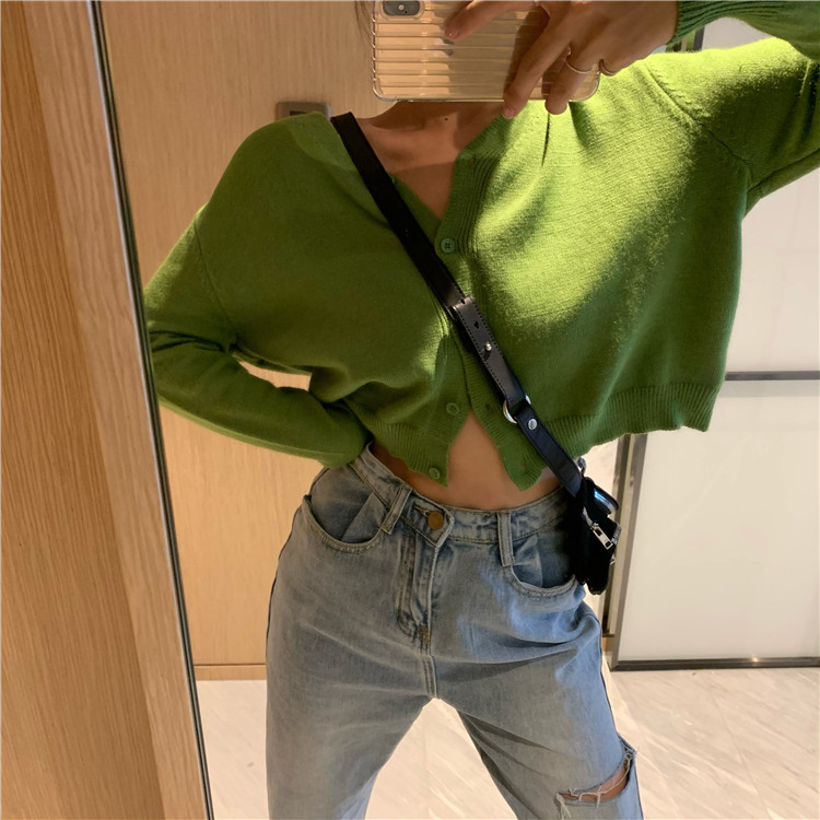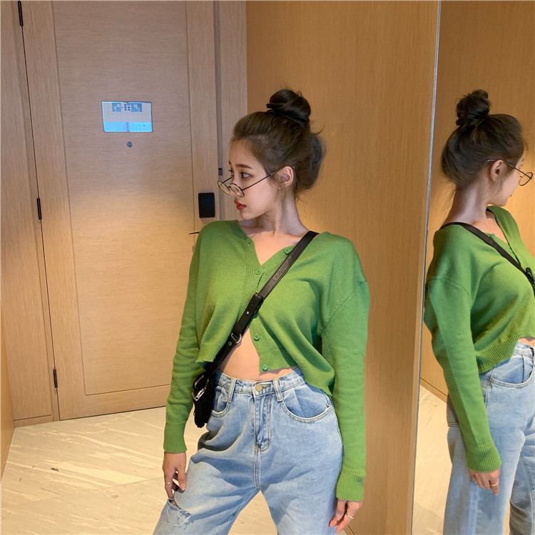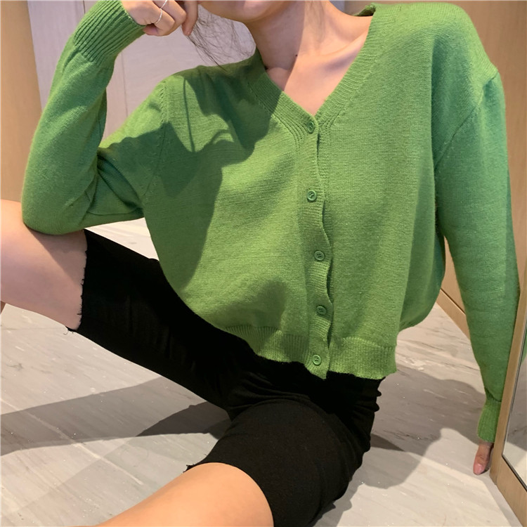 4 цвета вязаный свитер пальто с длинным рукавом Повседневный v-образный вырез сплошной цвет короткий свитер кардиганы женские
