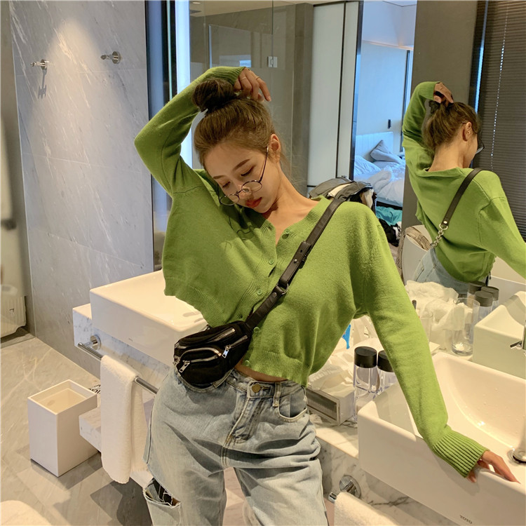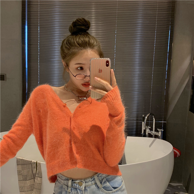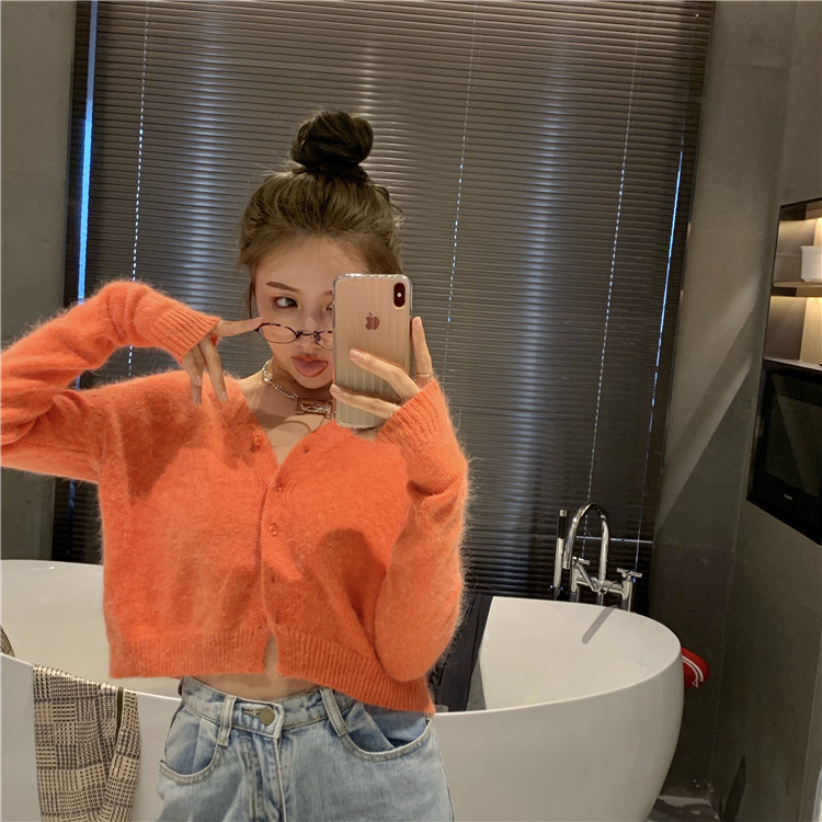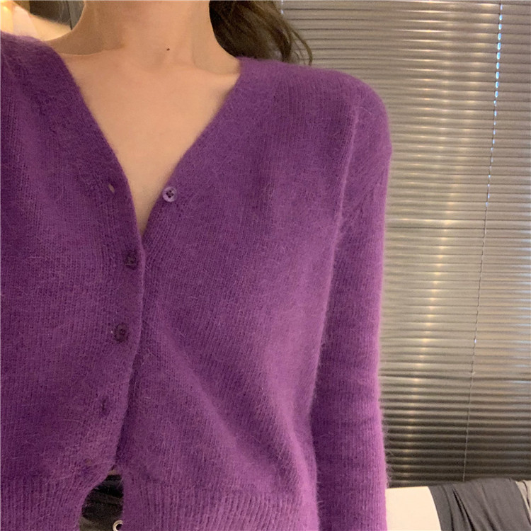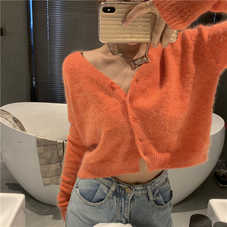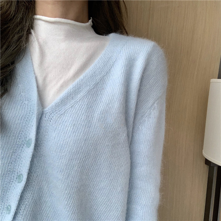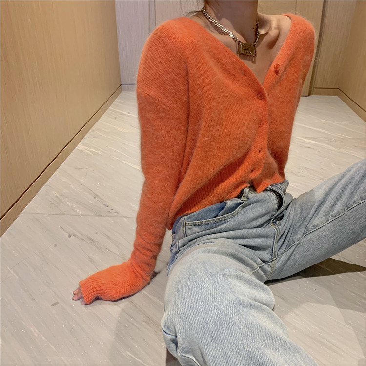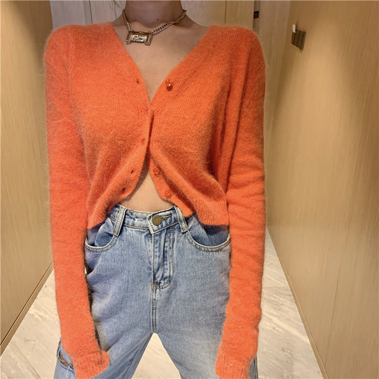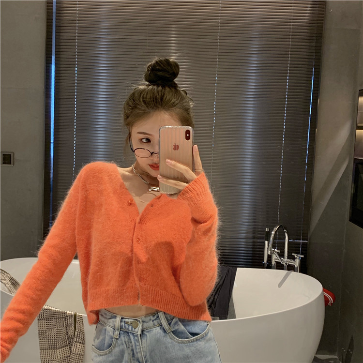4 цвета вязаный свитер пальто с длинным рукавом Повседневный v-образный вырез сплошной цвет короткий свитер кардиганы женские