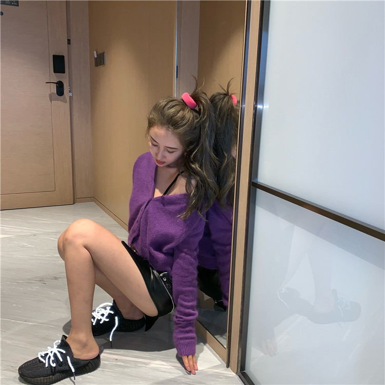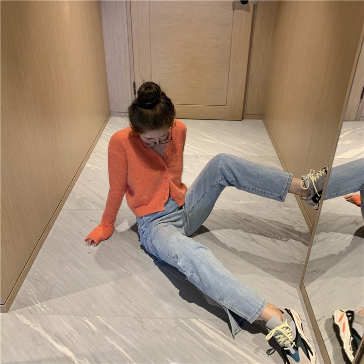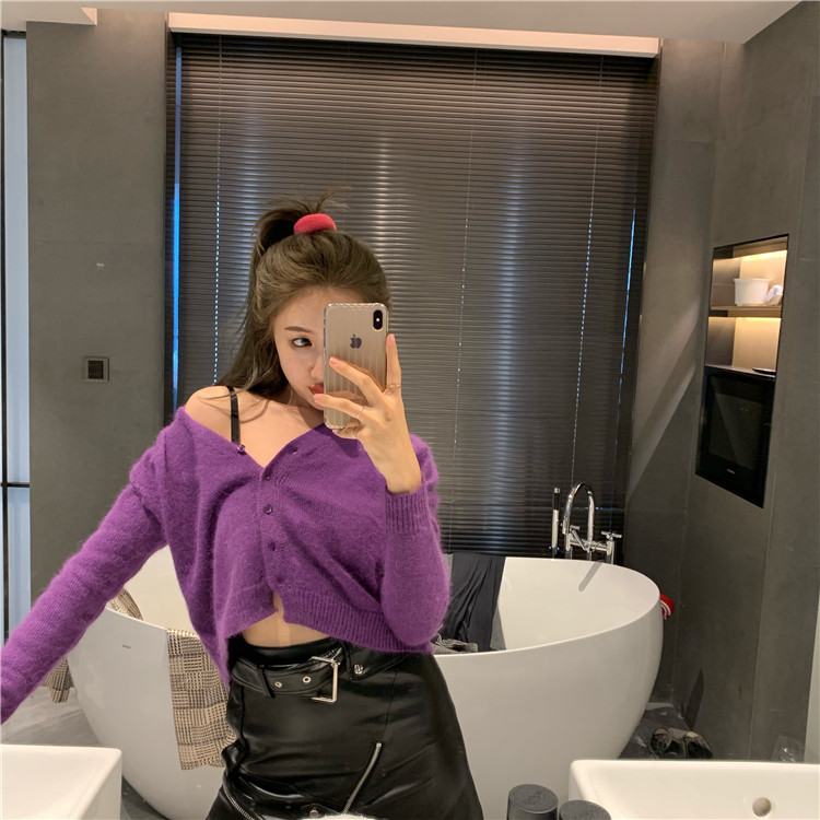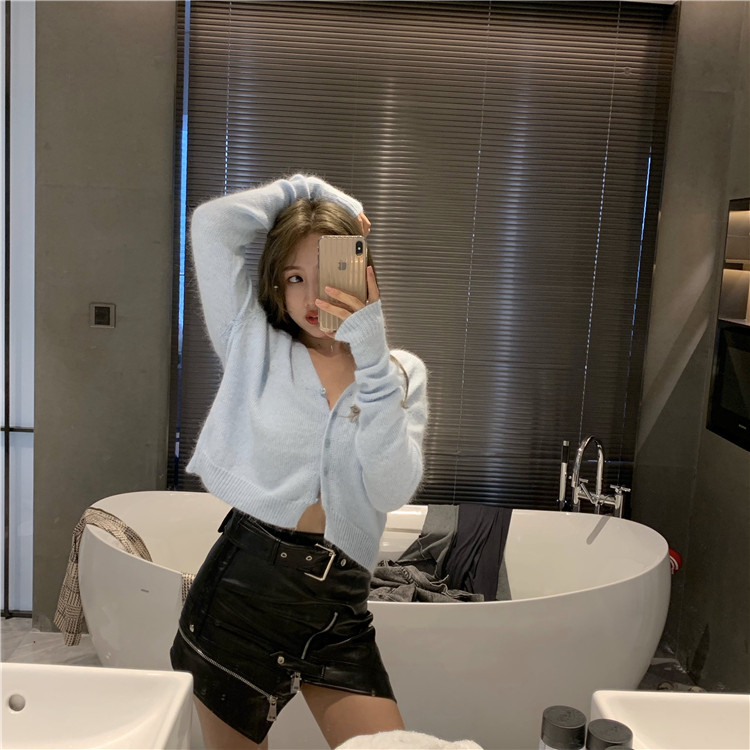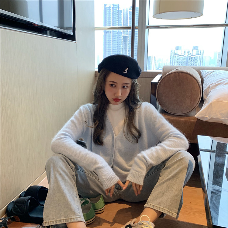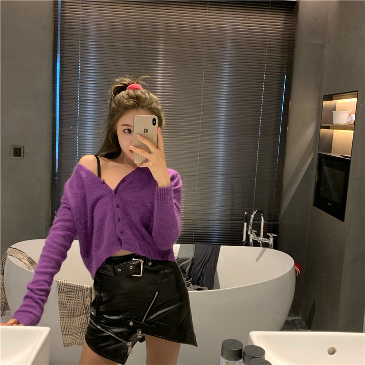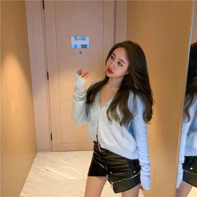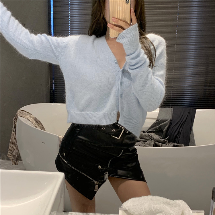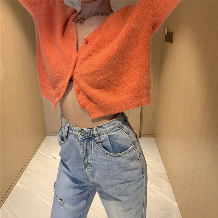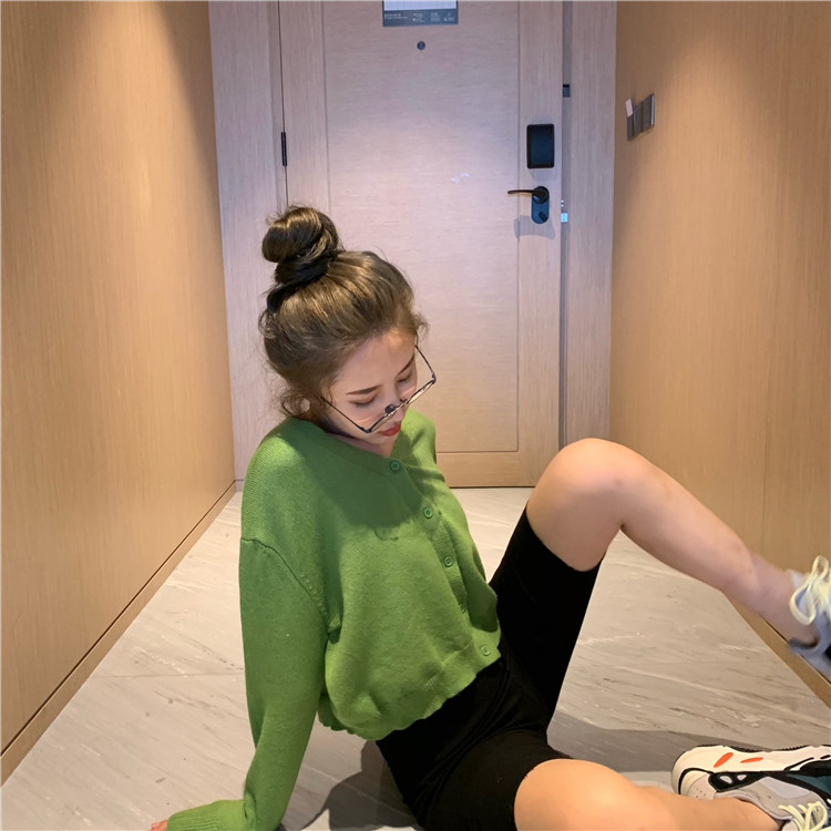 4 цвета вязаный свитер пальто с длинным рукавом Повседневный v-образный вырез сплошной цвет короткий свитер кардиганы женские