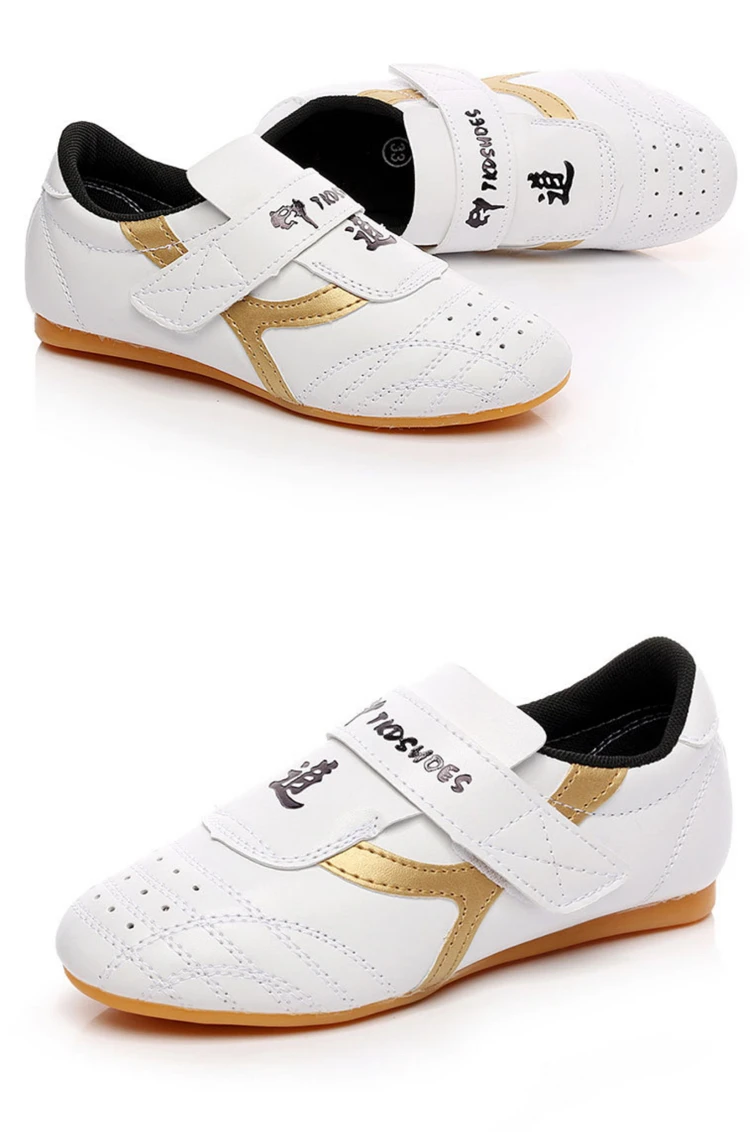 Наименование товара: обувь для тхэквондо Материал: верх из искусственной кожи, резиновая подошва Характеристики: мягкий, эластичный, дышащий Цвет: белый Пол: детей, взрослых Ширина: средняя, если у вас широкая или полная стопа, пожалуйста, выберите на 1-2 размера больше.