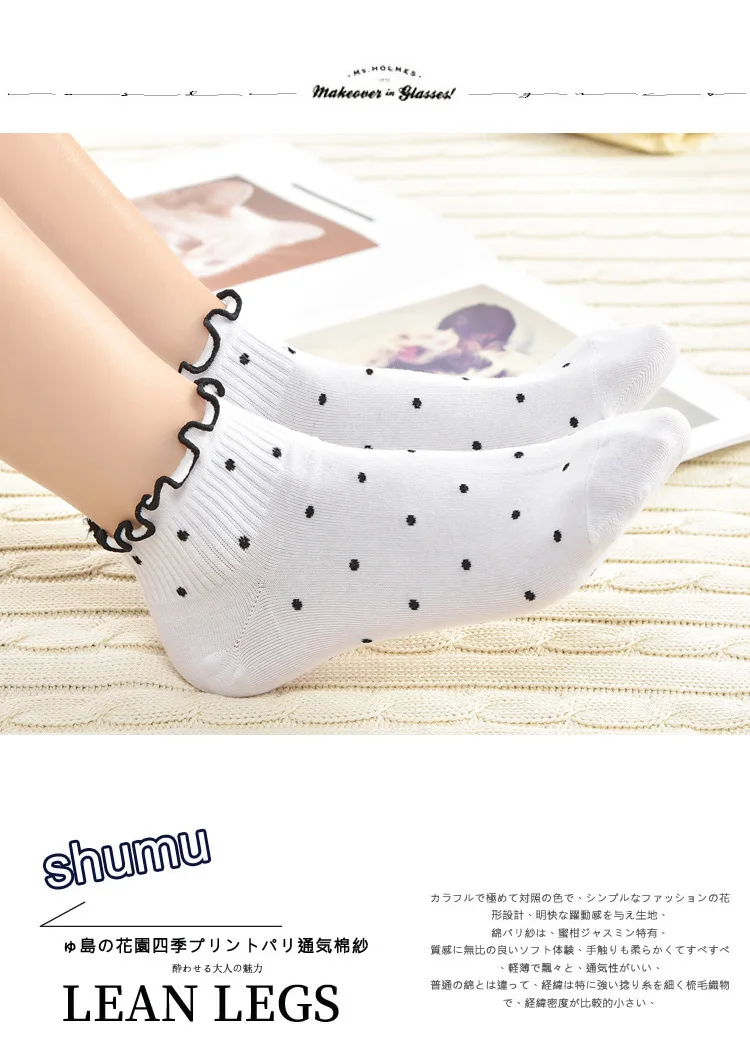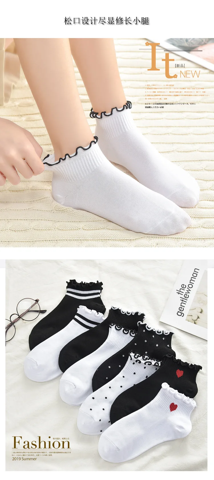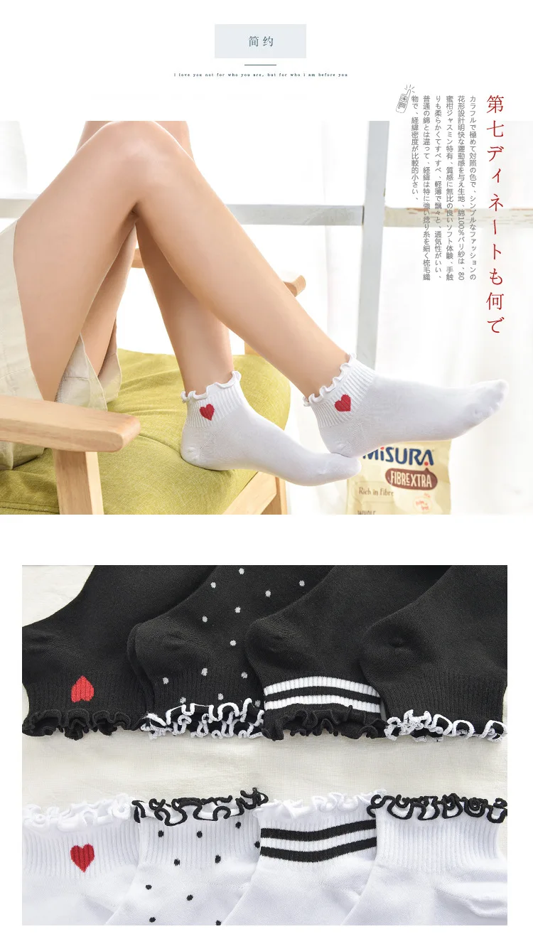 Новые модные дизайнерские кружевные женские носки с оборками; Короткие хлопковые носки для маленькой принцессы; осенние модные носки в горошек с красными сердечками и полосками