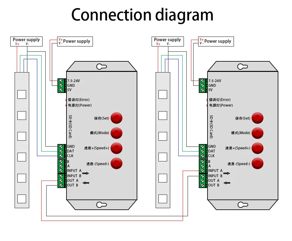 Примечание: Модель T-1000S с выходом одного порта, когда она контролирует 512 пикселей, скорость может достигать 30 кадров в секунду, более 512 пикселей, скорость кадра будет замедляться автоматически