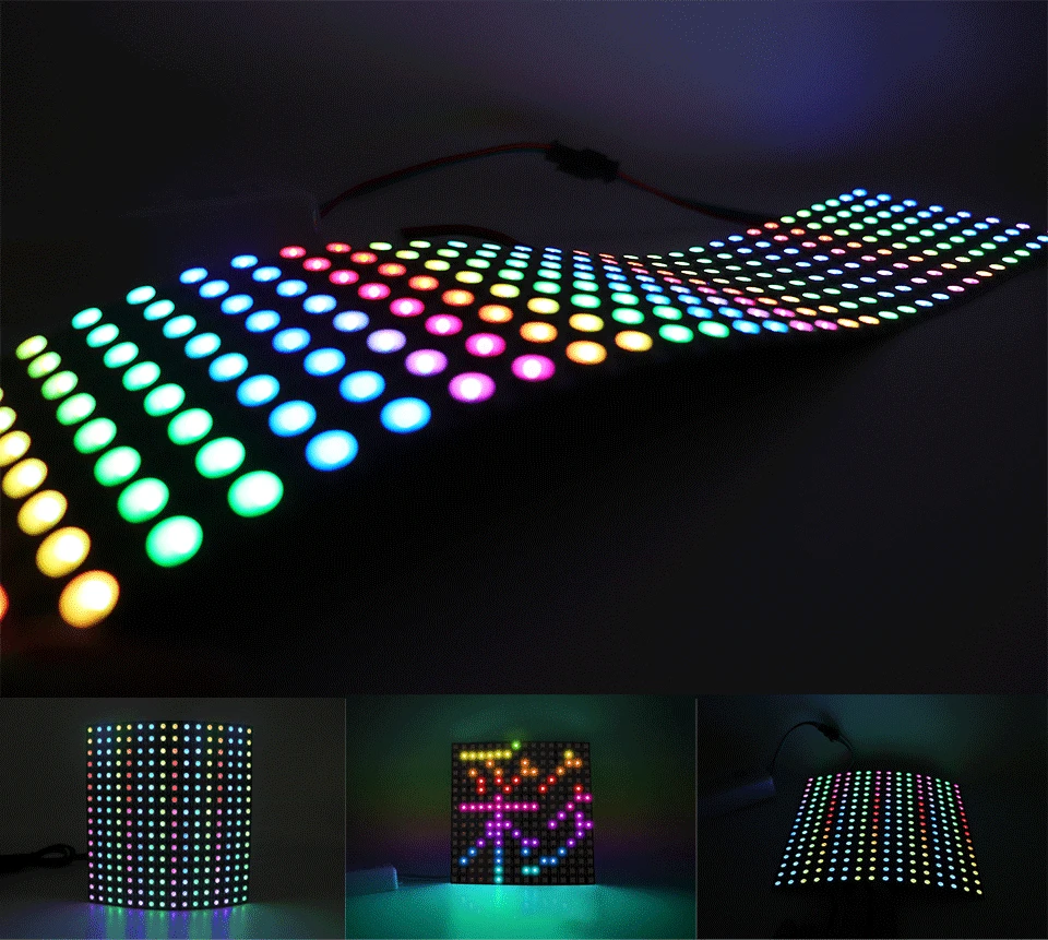 DC5V 8*8,16*16,8*32 пикселей WS2812 цифровой гибкий светодиодный экран программируемой панели индивидуально Адресуемая полноцветная дисплейная плата