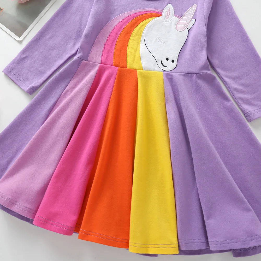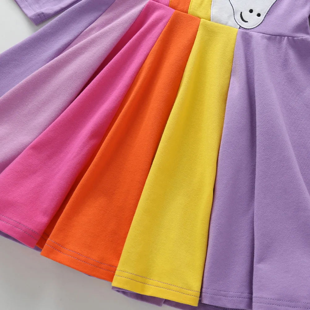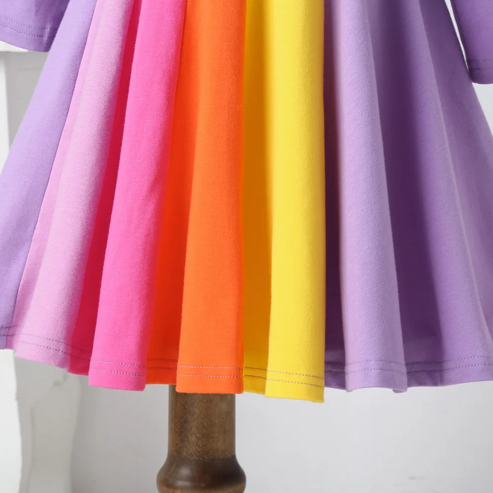 Наименование: платье с длинными рукавами и радужной вышивкой для девочек; сезон осень-зима
