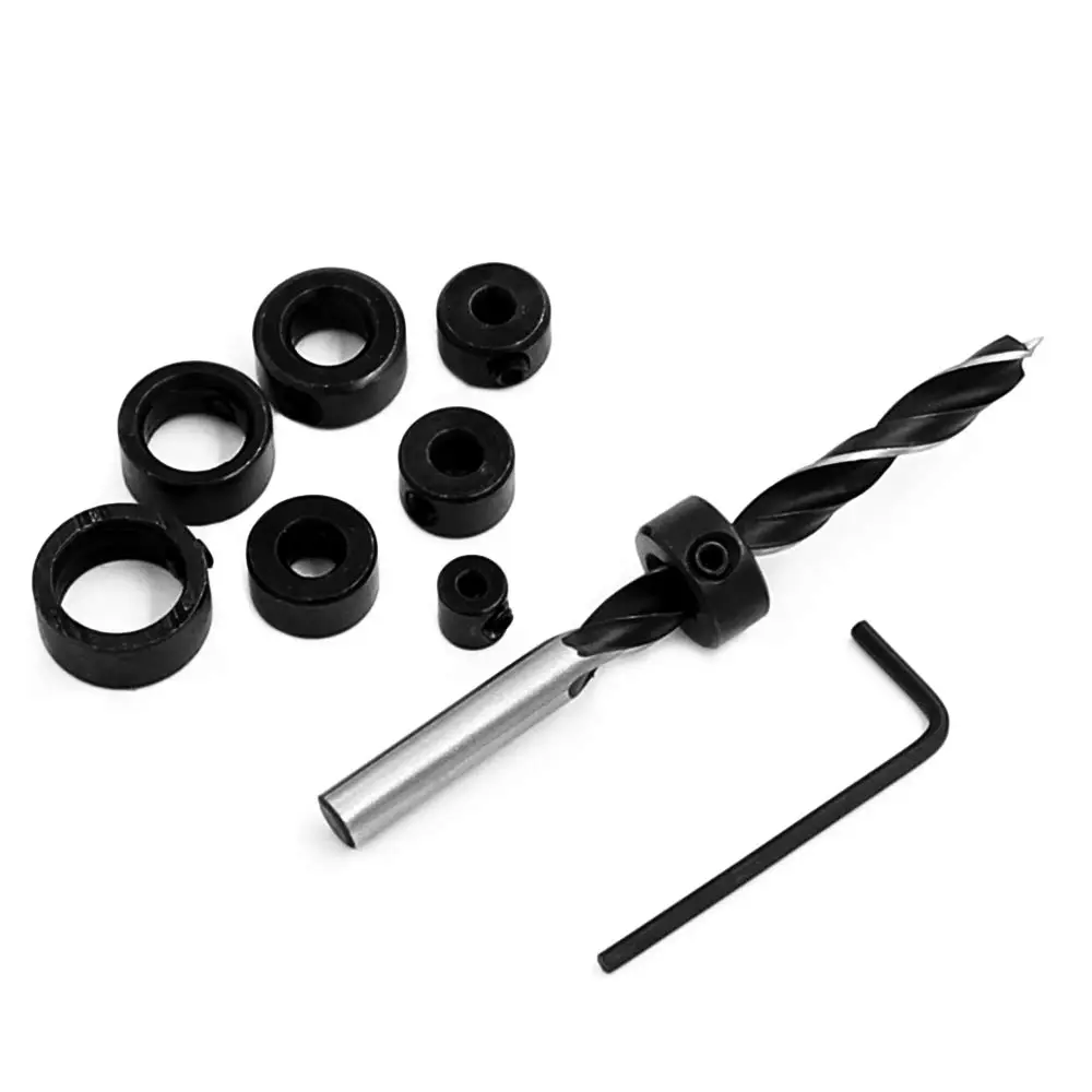 Набор заглушек сверла поможет вам быстро и легко сверить отверстия до точной глубины и идеально подходят для работы по производству и многократного сверления, путем положительной блокировки в любом месте вдоль бит.