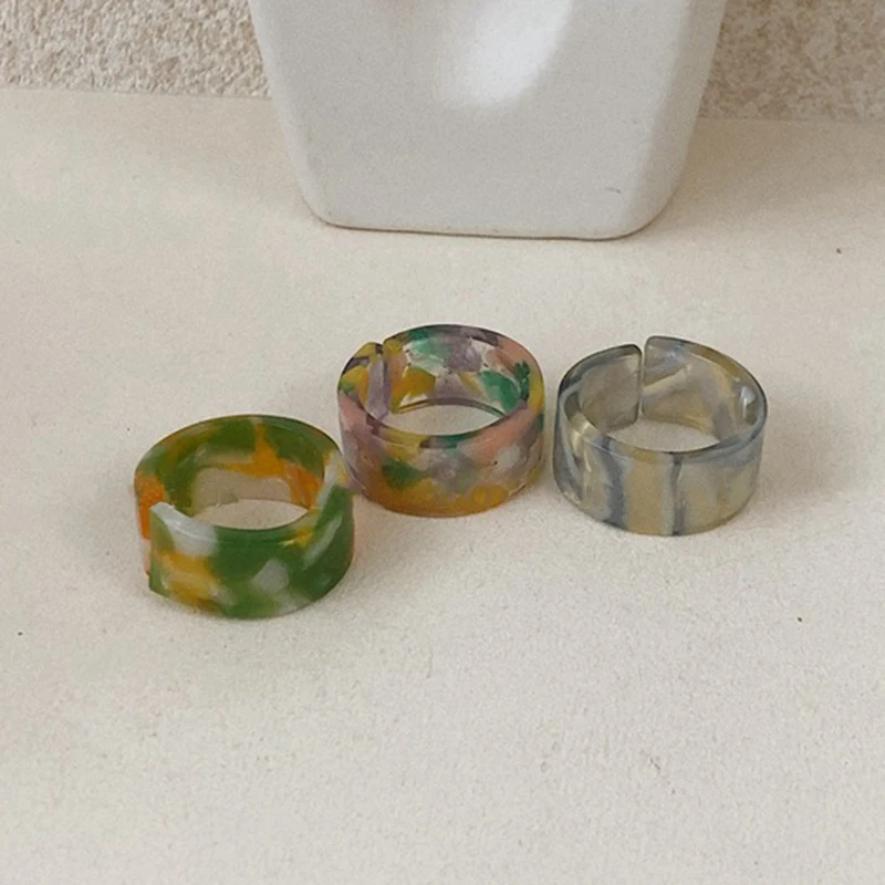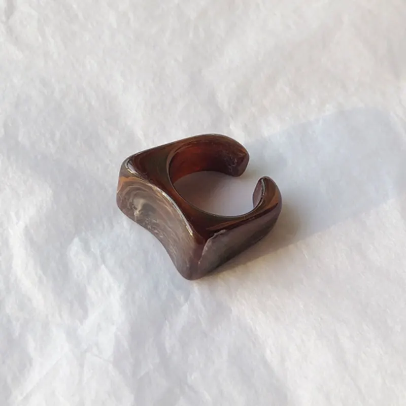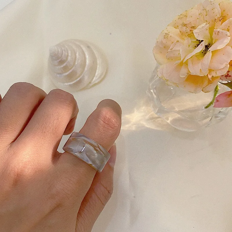 Винтажное модное кольцо из смолы с квадратным крутым ветром, широкое кольцо цвета слоновой кости, ювелирное изделие, подарок