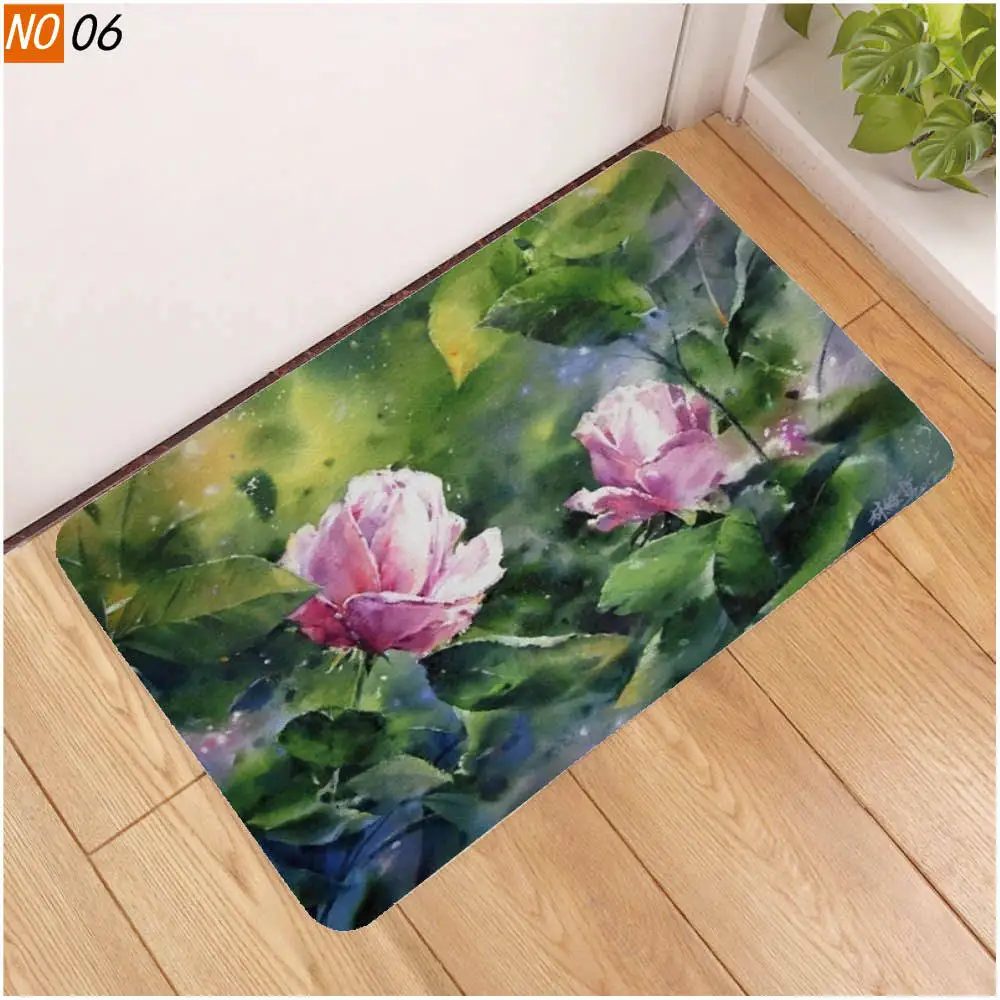 OIMG Противоскользящий напольный коврик у двери ванной с 3D принтом растений, коврик для унитаза, водопоглощающий коврик для ванной комнаты, ковер для гостиной