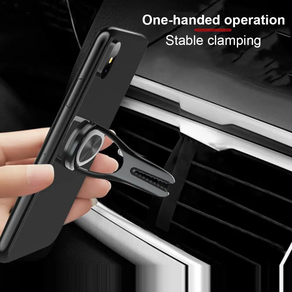 Descriptions:1. 2 in 1 Design: This smart phone car vent universal bracket has no magnets. Due to its simple and complementary design, it is 10 times more convenient to use than any other magnetic car holder. Two conversion modes for the phone holder and the car holder. Your best choice!2. Multi-angle Car Phone Bracket: With 90° flip folding design, the horizontal or vertical free rotation of the mobile phone is flexible and sufficient to meet the needs of different angles. Whenever you talk, navigate, listen to music or watch a movie, the stand always ensures that your smartphone is in your preferred location.3. High-quality Materials: The phone stand consists of zinc alloy, gear and TPU serrated clips. The internal structure of the gear has 18 gear snaps, which can ensure the mobile phone is in a very stable state from any angle and protect your mobile phone. Protect from road vibrations or problems. The unique TPU serrated clip design allows it to be mounted on the car vent for better GPS navigation.4. Car Exhaust Phone Holder: The new 3mm nano glue can be firmly attached to the phone to prevent the phone from falling. With the simple one-handed operation, the stand is easy to install on car vents in 10 seconds. Put the device into the vent with one hand and remove the device. It is the most convenient and simple car phone holder on the market.5. Safe Driving: Handheld for phone call and GPS navigation(dangerous). Release your hands and make GPS and phone more convenient and protect yourself.Specifications:Size: about 6.3 * 3.5CM/2.48*1.38inMaterial: metalInstallation: snap-onColor: blackSuitable for: all models of mobile phonesPacking List: Car Phone Bracket*1