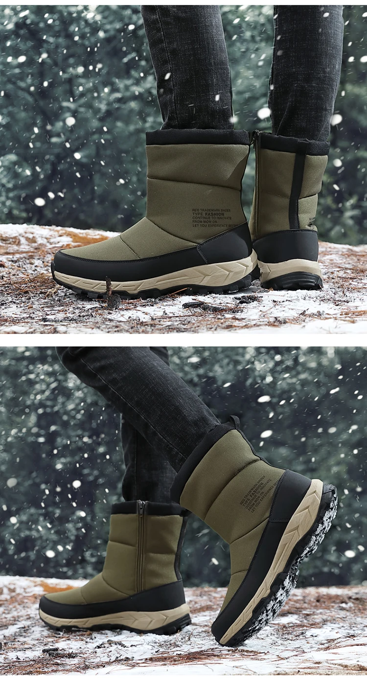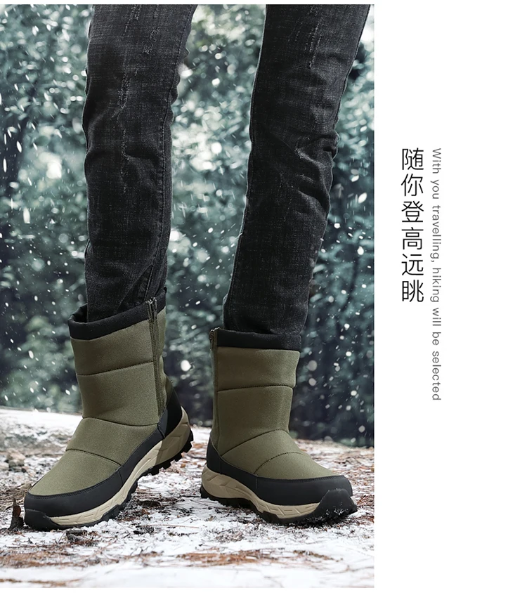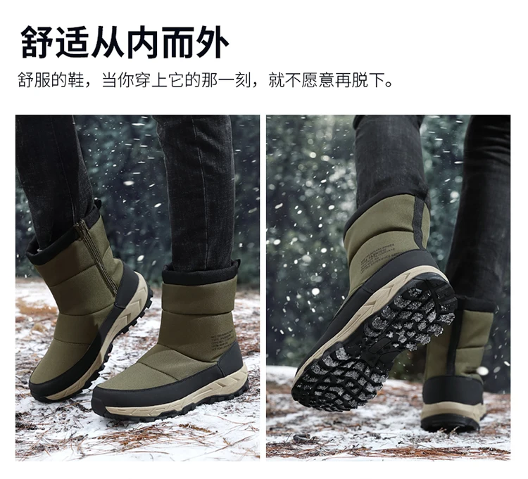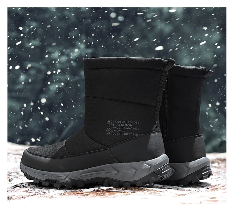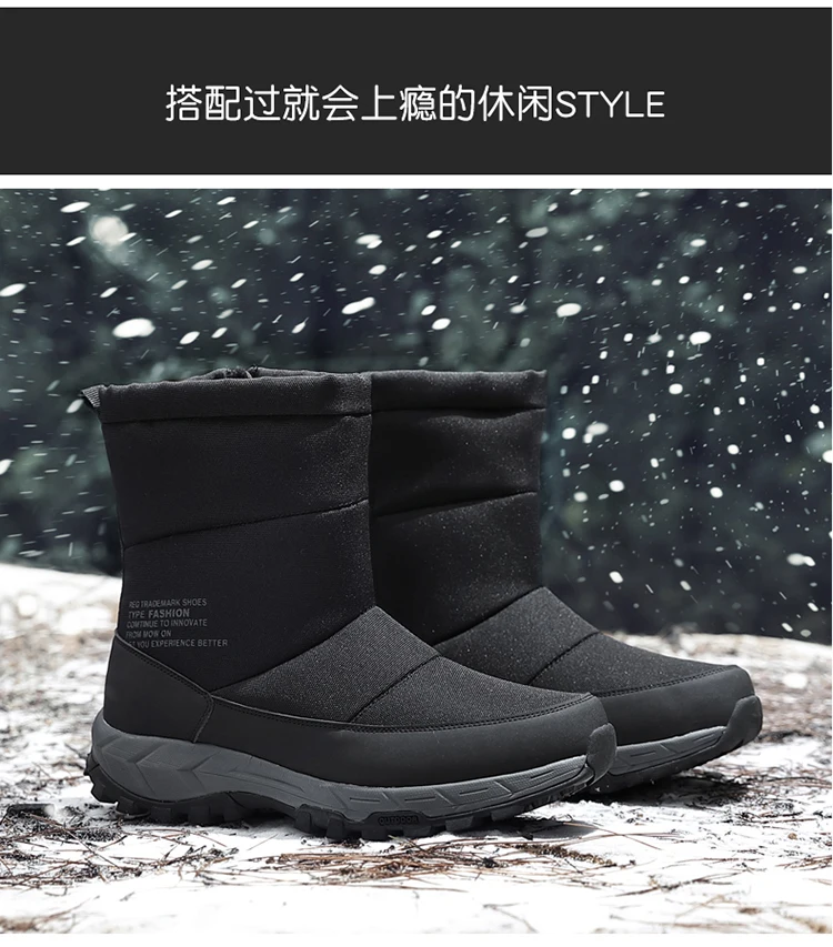 Зимняя уличная туристическая обувь, мужские кроссовки, теплые плюшевые меховые охотничьи водонепроницаемые ботинки, высокие горные альпинистские треккинговые ботинки для мужчин Материал верха: кожа Подошва: резиновая подошва Размер: 39-45