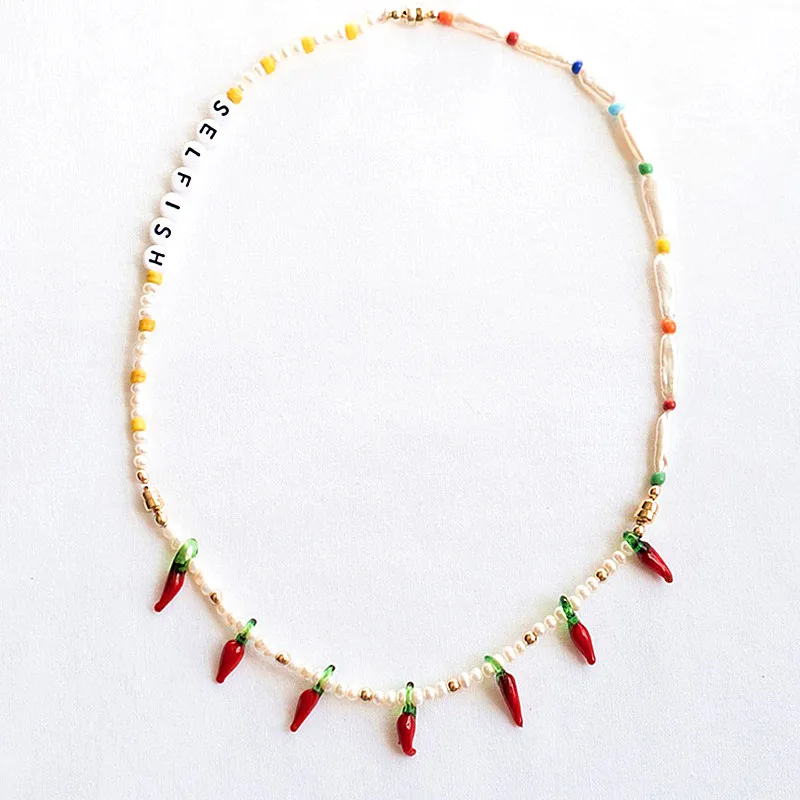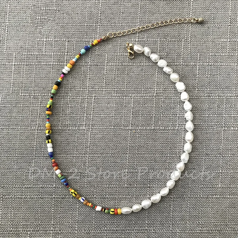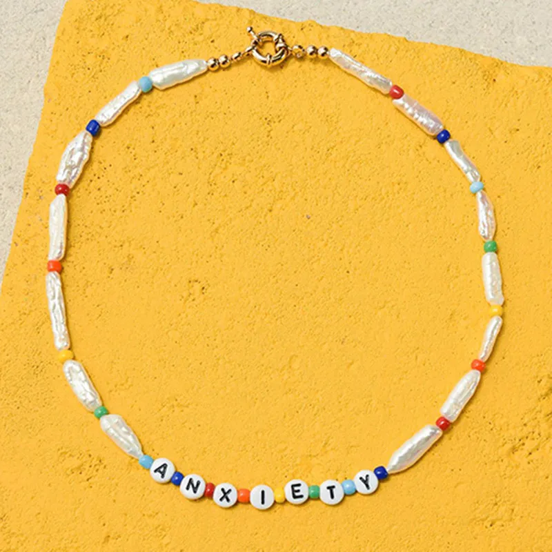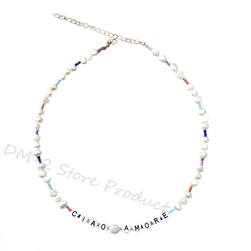 Женское Ожерелье с натуральным жемчугом и разноцветными бусинами, модное короткое колье в стиле бохо ручной работы с буквенным принтом, Подарочные ювелирные изделия