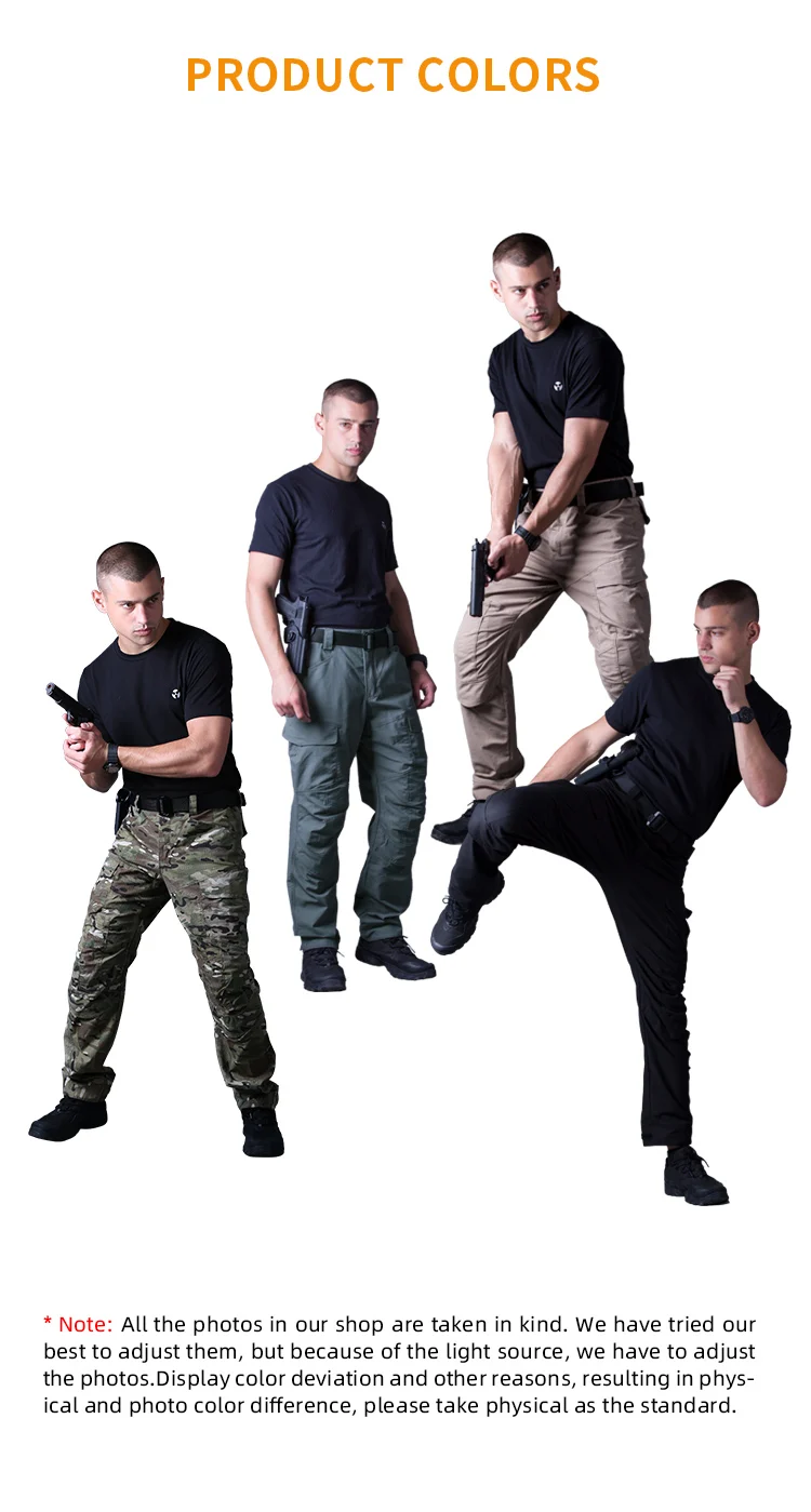 Цвет: черный, хаки серый зеленый камуфляж Размер: s, m, l, XL, XXL Ткань: 97% хлопок 3% спандекс Особенности: предусадочная очистка воды, усадка до самой низкой. Мягкая на ощупь, высокая эластичность с обеих сторон. Двойные нитки для шитья. Вспомогательный материал принимает военный нейлон липучки для обеспечения прочности и долговечности склеивания. Эргономичный дизайн колена обеспечивает спортивный комфорт. Колено также разработано со встроенным протектором колена. Общий дизайн основан на концепции самовыращивания, сдержанного, многофункционального, городского специального обслуживания и спорта на открытом воздухе.