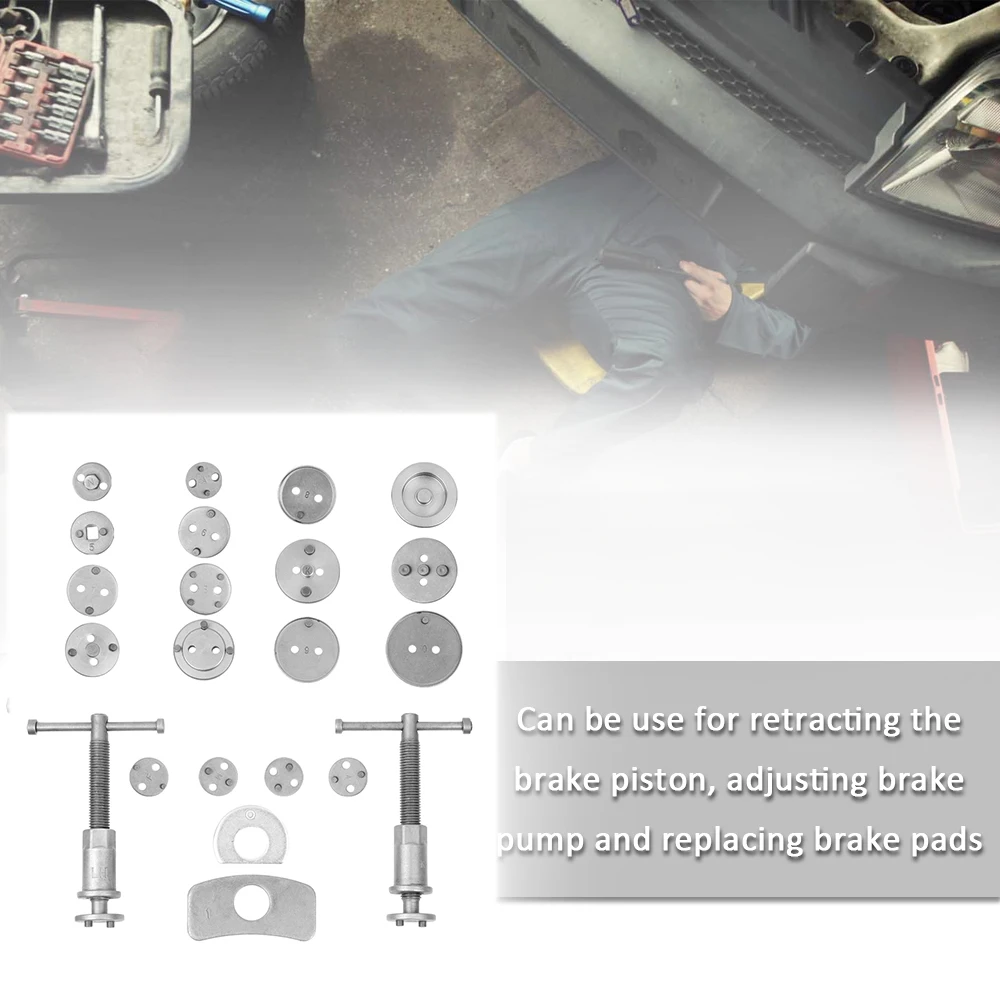 Этот универсальный тормозной суппорт, набор инструментов для перемотки поршней, предназначен для перемотки поршней в тормозных суппортах. Этот набор инструментов позволяет перемотать поршни в тормозных суппортах вручную, не повреждая прокладки в поршнях. Это делает, позволяя вращать поршень одновременно, как толкать поршень обратно в суппорт.