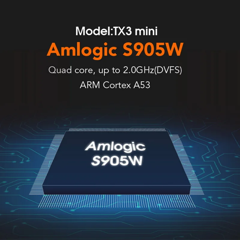 Процессор: Amlogic S905W до 2,0 ГГц, четырехъядерный ARM Cortex-A53