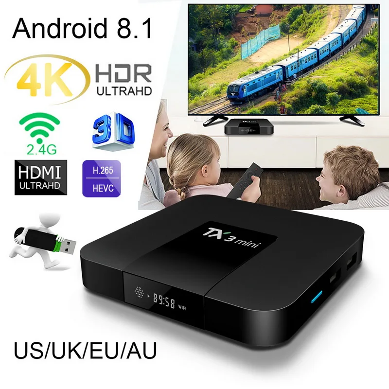 ** ОС Android 8,1: ТВ-приставка Android 8,1 принимает быструю и мощную операционную систему Android 8,1, что позволяет профессиональной обработке изображений и сверхбыстрой скорости работы.