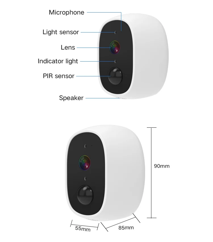 Основной чипсет Hi3518EV200 Датчик HD COMS сенсор 1/2.7 PS5230 Объектив 2G2P полный супер-угол объектива Угол горизонтальный 92 градуса Видеопоток 1920*1080/15fps 1920*1080/15fps Поддержка автоматического баланса белого CMOS, автоматическое улучшенное управление, автоматическая компенсация черного света System Lite OS Освещение в режиме ожидания 4 часа под солнцем, хватает на один день Автоматический переключатель с двумя фильтрами для дневного и ночного переключения ИК-Расстояние 850 нм, эффективное расстояние 10-15 м Интернет совпадает с QR-кодом Обнаружение движения PIR Кодирование звука AAC и G.726 I/O -38dB Mic/внутри 1 * Динамик Запись управление методами записи ручная/Будильник запись Протоколы соединения P2P, TCP/IP, HTTP, TCP, UDP, SMTP, FTP, DHCP, DNS, DDNS, NTP, UpnP, RTSP Wi-Fi 2,4 ГГц IEEE 802.11b/G/N Сигнализация с обнаружением PIR да Функции автоматической адаптации да Двусторонний разговор в реальном времени Панорамное шоу аналоговый 3D и Авто Круиз Время ожидания 15 с, 30 с, 60 с, опция Голосовой вызов да Дистанционное Пробуждение да Пробуждение движения PIR Приложение i-CAM,ios10.0, Android 5,0 и выше Другие батареи питания Тем. -10 ℃ ~ + 50 ℃ ГУМ. ≤ 80% RH
