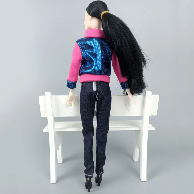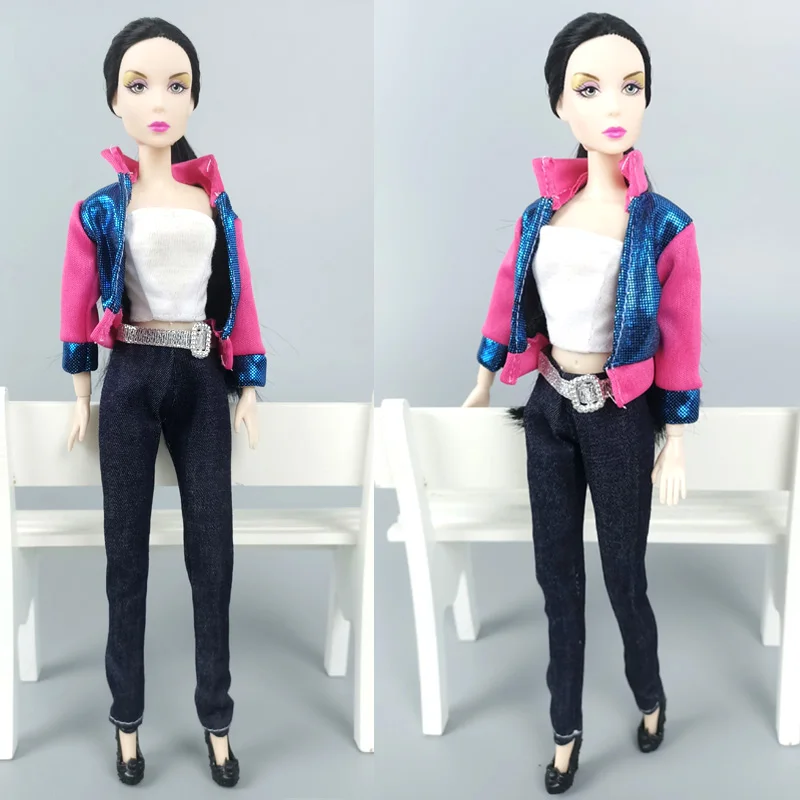 1 комплект модной одежды для куклы Барби, розовое синее пальто, джинсовые штаны, топ, одежда ручной работы для кукол Барби, аксессуары для детей